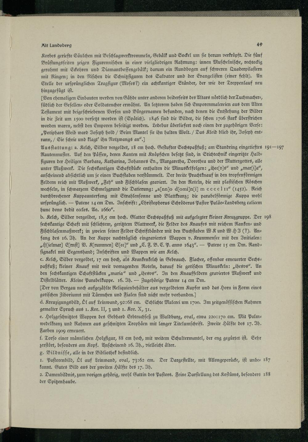 Der von Bergau noch aufgezaͤhlte Reliquienbehaͤlter aus vergoldetem Kupfer und das Horn in Form eines gotiſchen Ziboriums mit Tuͤrmchen und Fialen find nicht mehr vorhanden.)