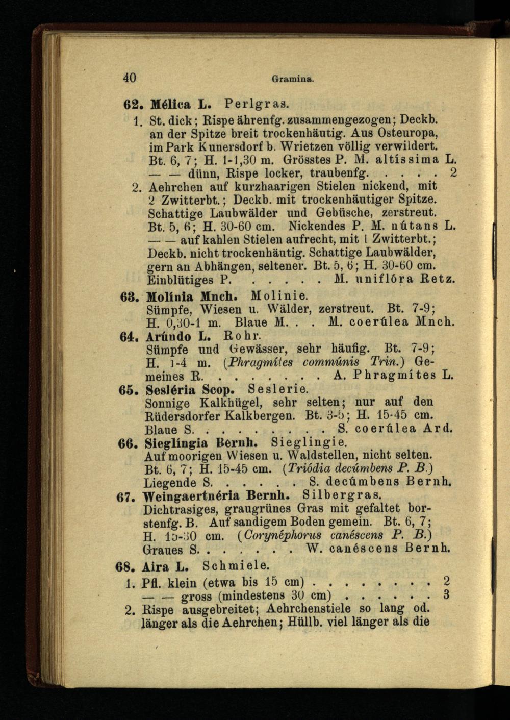 Dichtrasiges, graugrünes Gras mit gefaltet bor- stenfg. B. Auf sandigem Boden gemein. Bt. 6, 7;