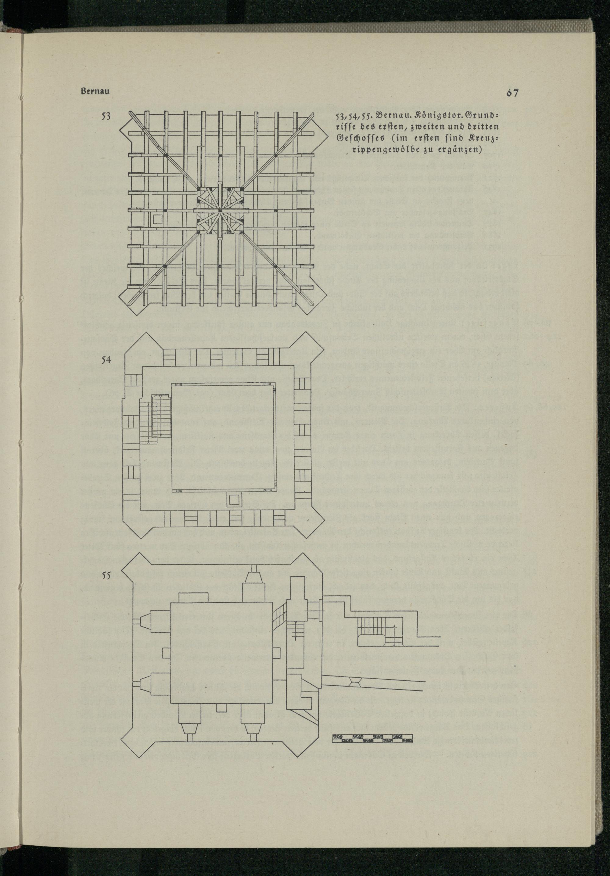 Bernau 53 54 53, 54, 55. Bernau . Königstor. Grund: riſſe des erſten, zweiten und dritten Geſchoſſes(im erſten find Kreuz: rippengewoͤlbe zu ergänzen) = EI . 67