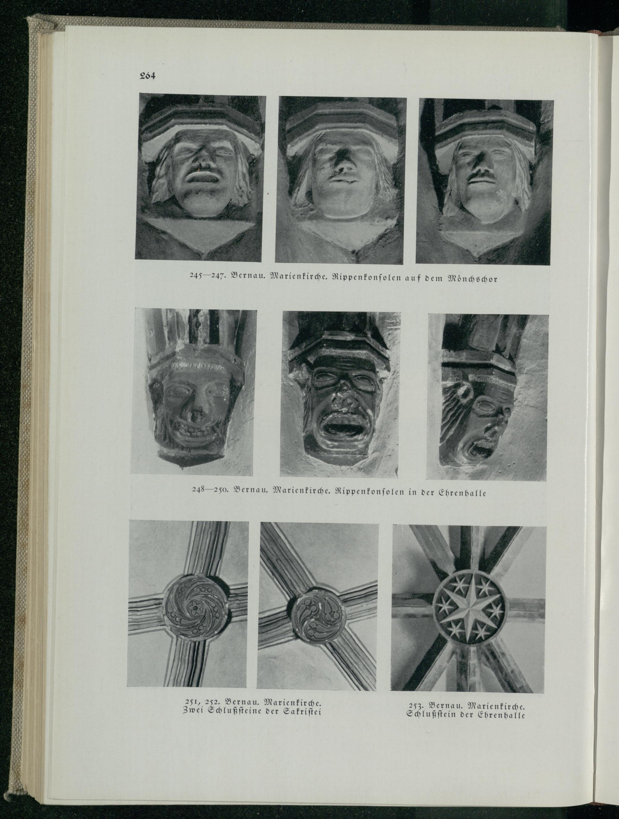 264 245-247. Bernau . Marienkirche. Rippenkonsolen auf dem Mönchschor 248-250. Bernau . Marienkirche. Rippenkonsolen in der Ehrenhalle 251, 252. Bernau . Marienkirche. Zwei Schlußsteine der Sakristei 253. Bernau. Marienkirche. Schlußstein der Ehrenhalle