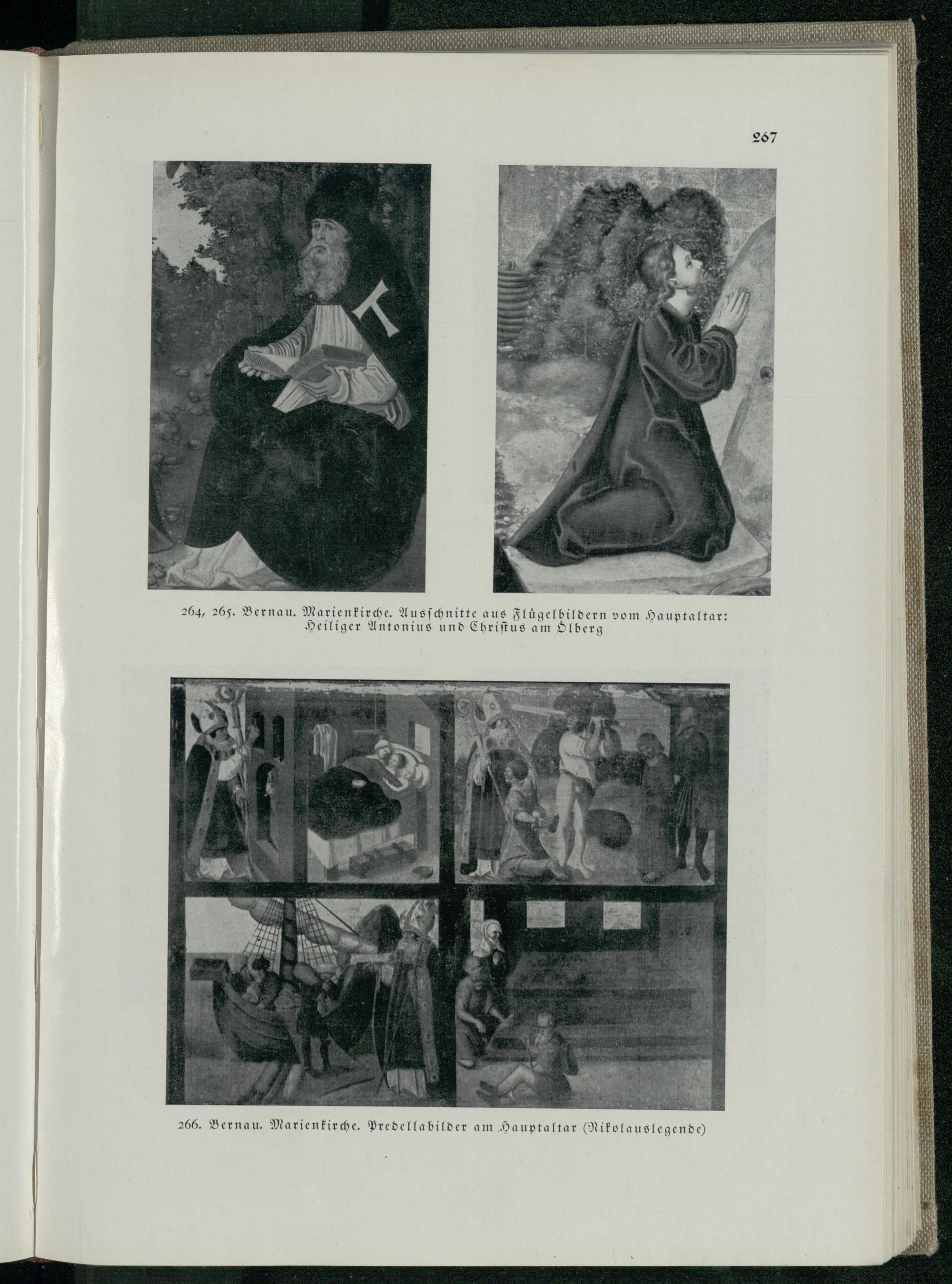 264, 265. Bernau . Marienkirche. Ausschnitte aus Flügelbildern vom Hauptaltar: Heiliger Antonius und Christus am Olberg 266. Bernau. Marienkirche. Predella bilder am Hauptaltar( Nikolauslegende) 267