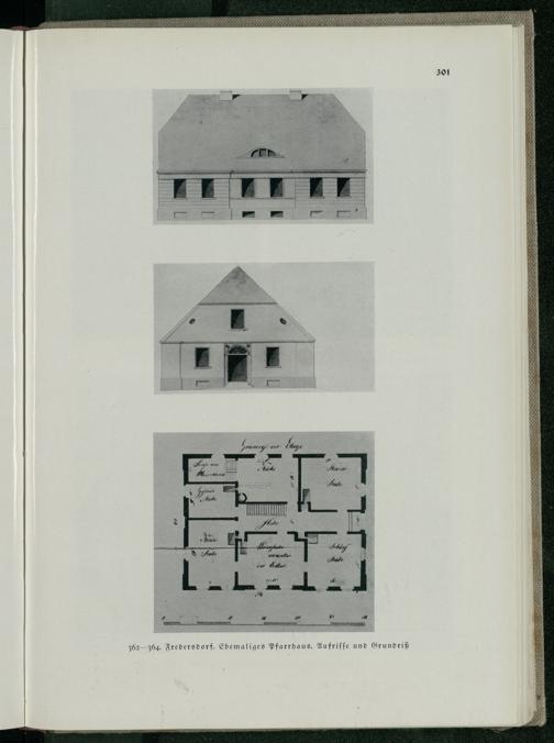 Sprize Gesinde Atabe Gravure ur Elage Rücke Itea car Stube. Stuke L_ Flutr. weranter ser Veeler. 13-10* T H Schlaf Atubo. 362-364. Fredersdorf . Ehemaliges Pfarrhaus. Aufrisse und Grundriß 301