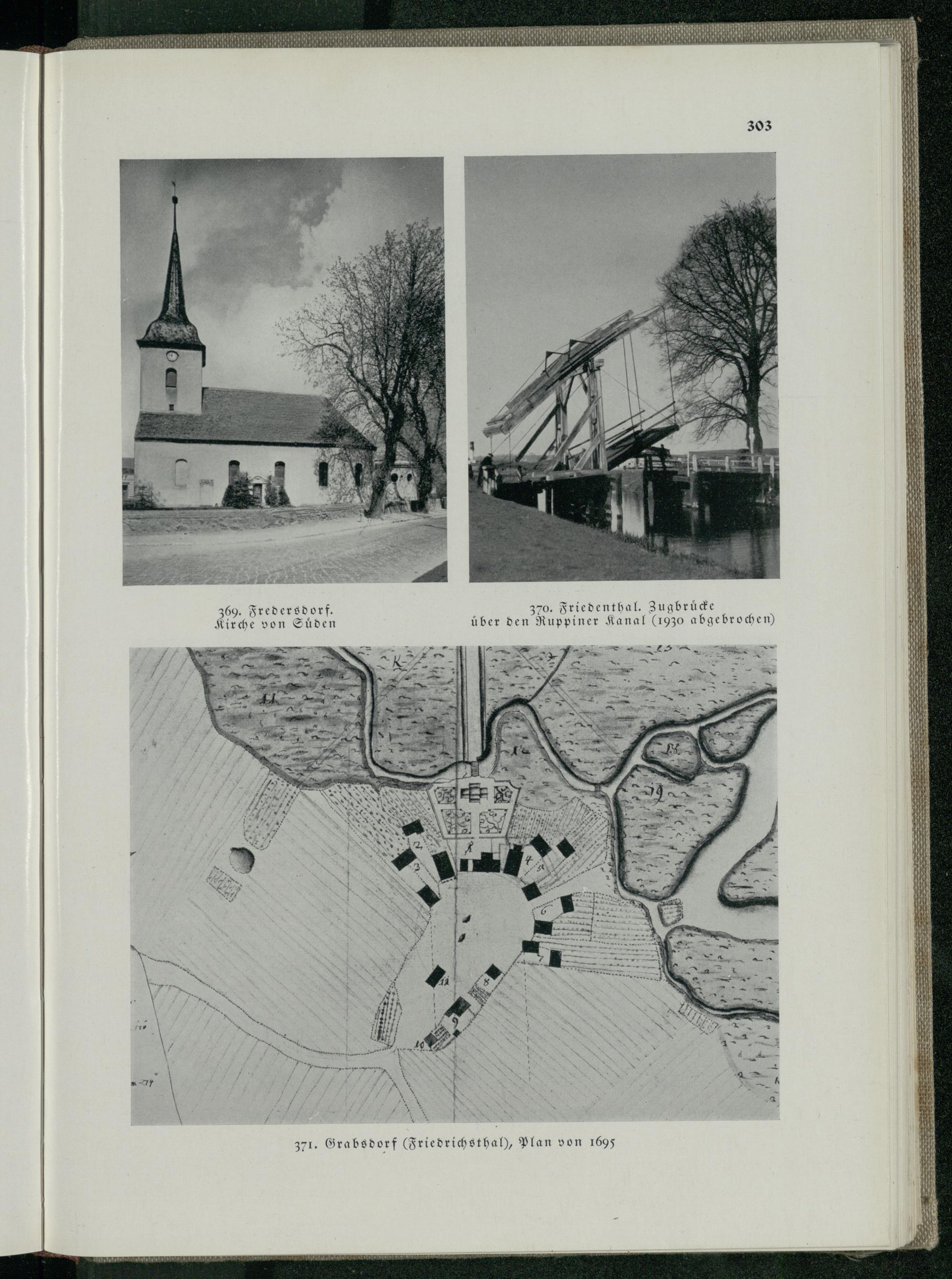 *.74 C- 303 369. Fredersdorf . Kirche von Süden 370. Friedenthal. Zugbrücke über den Ruppiner Kanal( 1930 abgebrochen) M 4 Sp 371. Grabsdorf( Friedrichsthal ), Plan von 1695 ི བ LU
