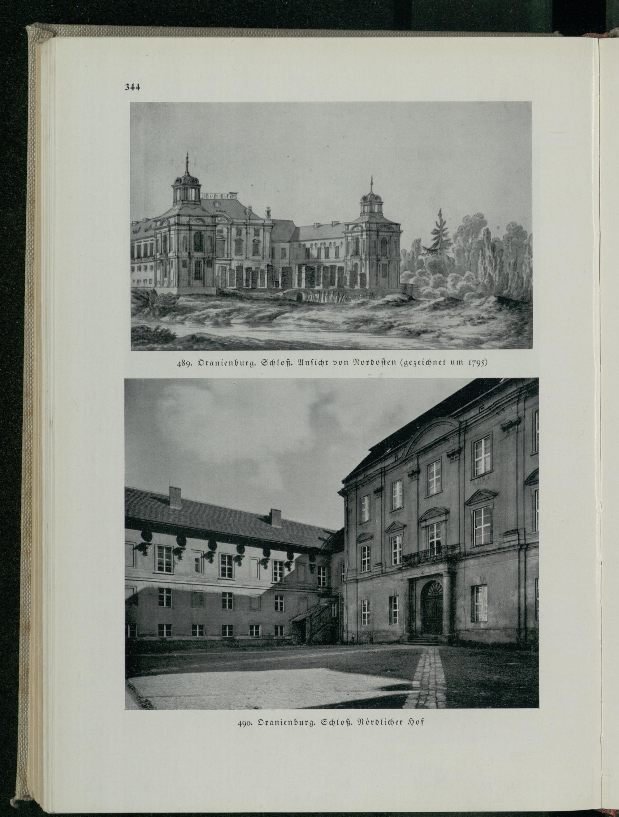 344 489. Oranienburg . Schloß. Ansicht von Nordosten( gezeichnet um 1795) 490. Oranienburg . Schloß. Nördlicher Hof