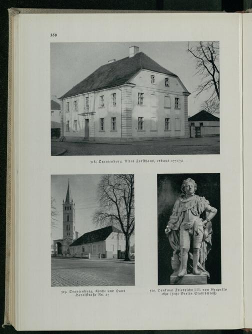 358 518. Oranienburg . Altes Forsthaus, erbaut 1771/72 519. Oranienburg . Kirche und Haus Havelstraße Nr. 27 520. Denkmal Friedrichs III. von Grupello 1692( jest Berlin Stadtschloß )