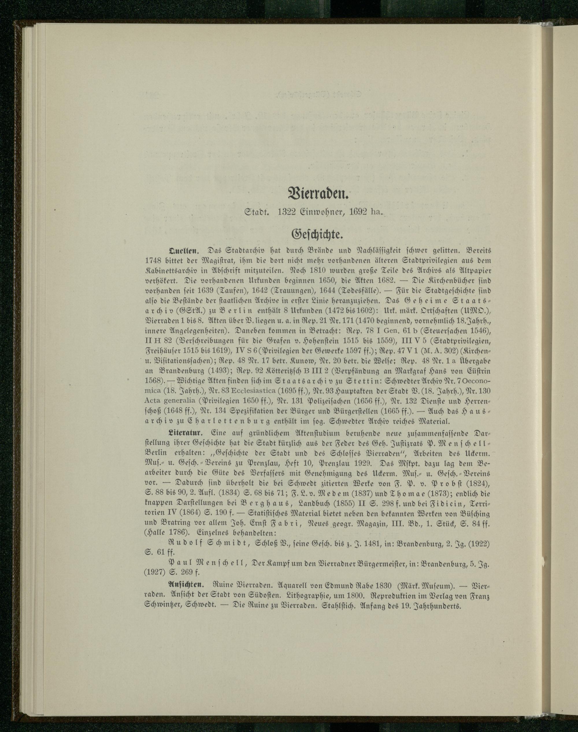 Paul Menſchell, Der Kampf um den Vierradner Bürgermeiſter, in: Brandenburg , 5. Ig. (1927 S. 269.