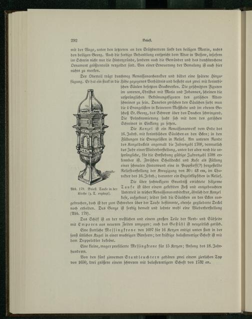 noch erhalten. Das Ganze iſt farbig bemalt und lohnte wohl eine Wiederherſtellung (Abb. 179).