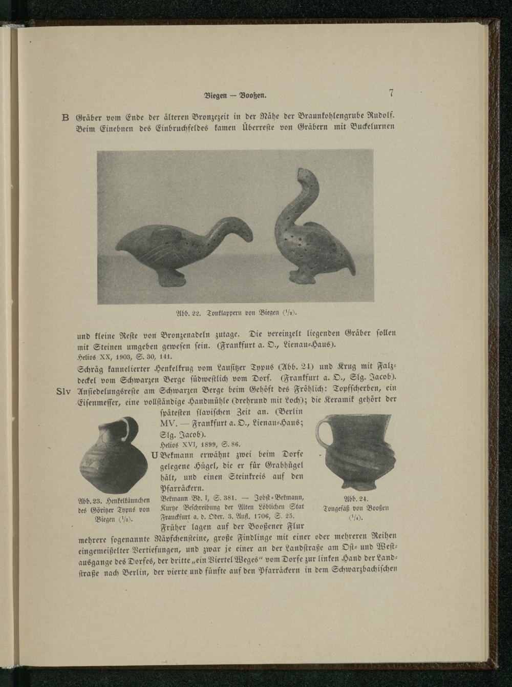 Abb. 23. Henkelkännchen Bekmann Bd. I, S. 381.— Jobſt⸗-Bekmann , Abb. 24. 1 des Göritzer Typus von Kurtze Beſchreibung der Alten Löblichen Stat Tongefaß von Booßen Biegen(Ms). Franckfurt a. d. Oder. 3. Aufl. 1706, S. 25. ö