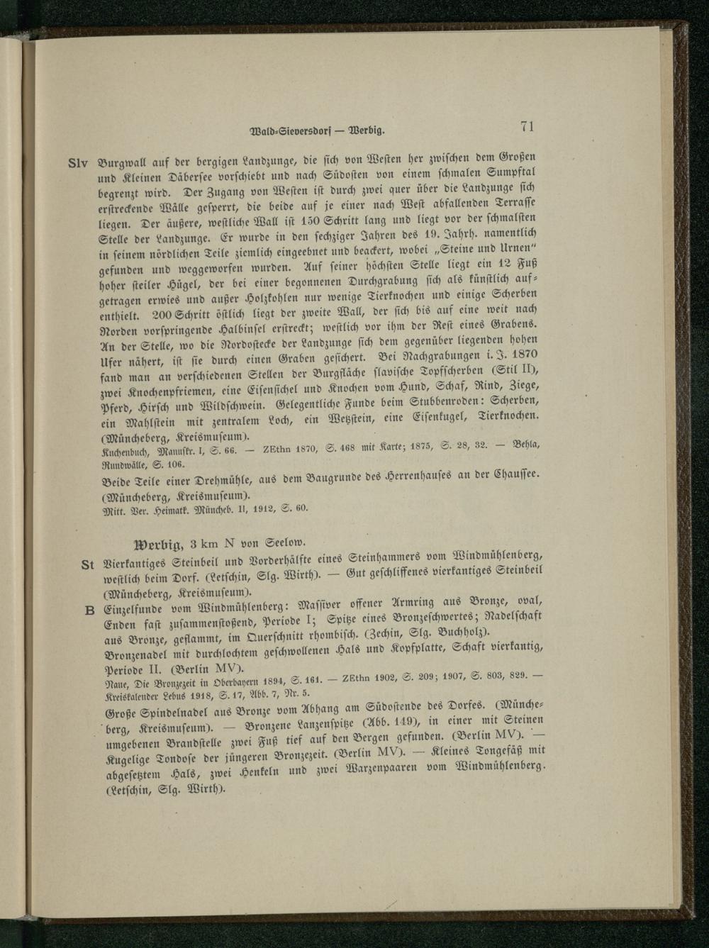 (Müncheberg , Kreismuſeum). Kuchenbuch, Manuſkr. l, S. 56.— ZEthn 1870, S. 468 mit Karte; 1875, S. 28, 32.— Behla, Rundwälle, S. 106.