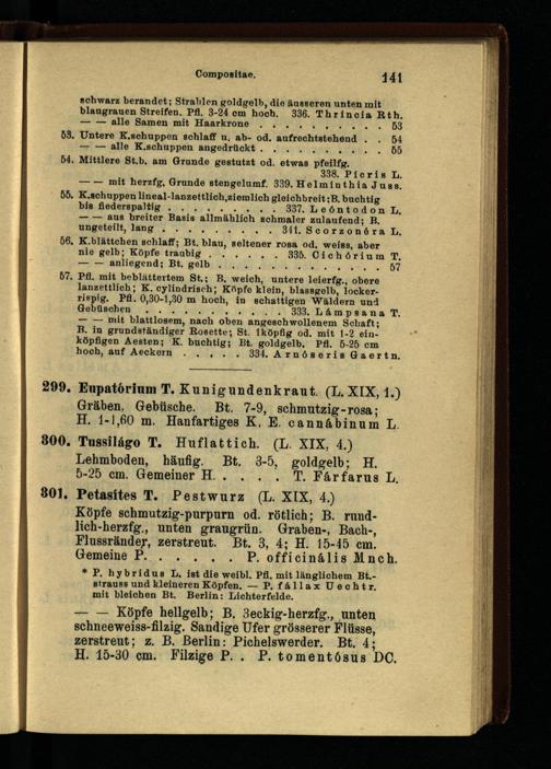 299. Enpatörium T. Kunigundenkraut. (L. XIX, 1.) Gräben, Gebüsche. Bt. 7-9, schmutzig-rosa;