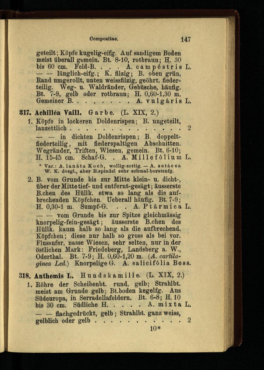 geteilt; Köpfe kugelig-eifg. Auf sandigem Boden meist überall gemein. Bt. 8-10, rotbraun; H. 30 bis 60 cm. Feld-B. . . . A. campöstrisL.