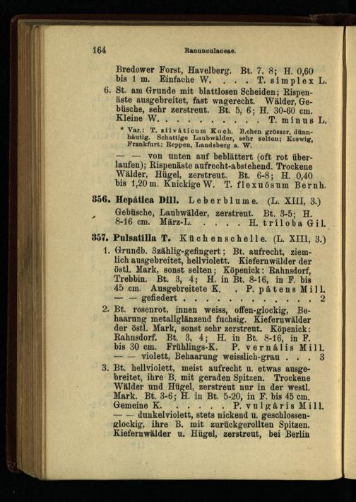 1. Grundb. 3zählig-gefingert; Bt. aufrecht, ziemlich ausgebreitet, hellviolett. Kiefernwälder der östl. Mark, sonst selten; Köpenick: Rahnsdorf, Trebbin. Bt. 3, 4; H. in Bt. 8-16, in F. bis