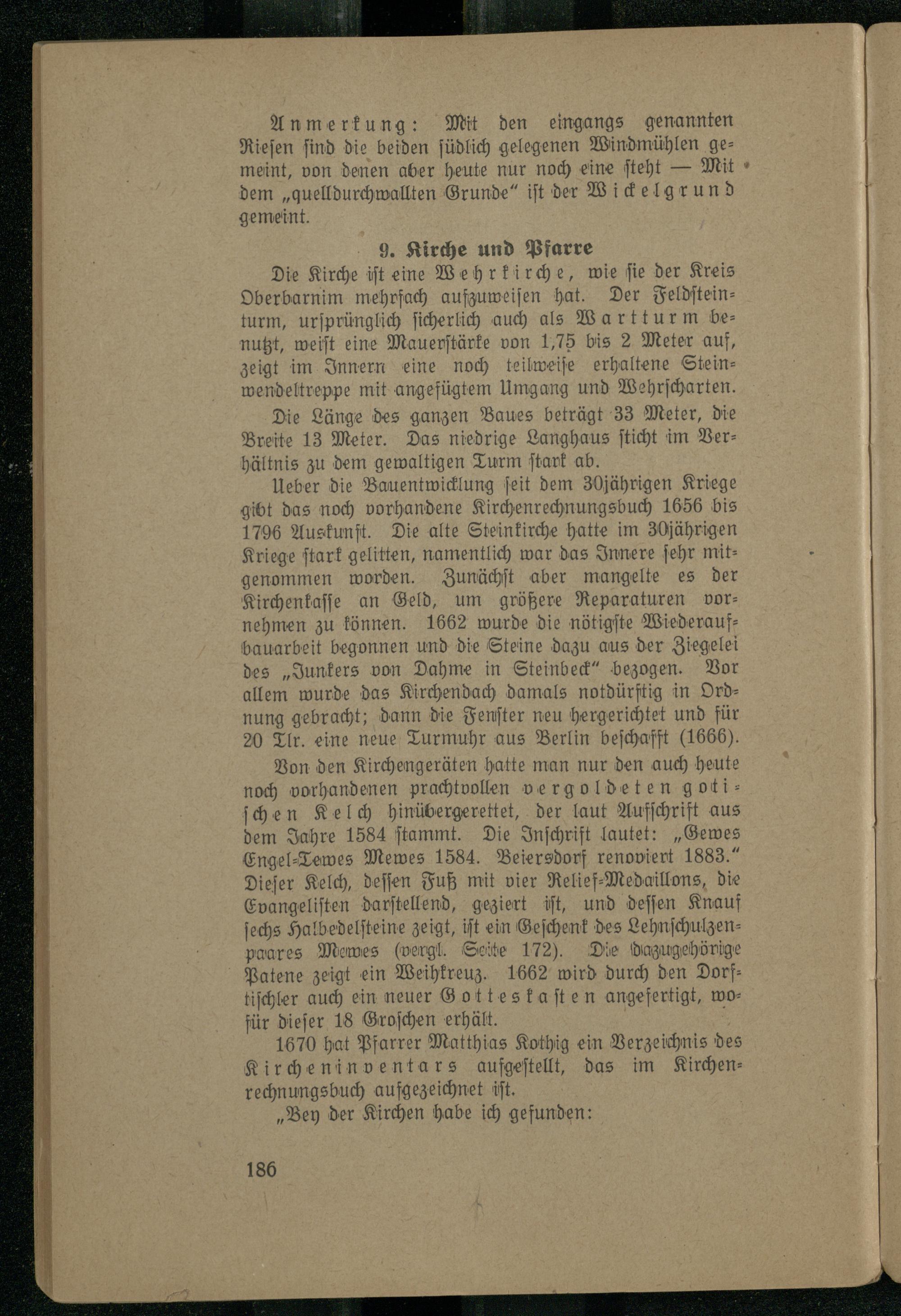 1670 hat Pfarrer Matthias Kothig ein Verzeichnis des Kirche ninventars aufgeſtellt, das im Kirchenrechnungsbuch aufgezeichnet iſt.