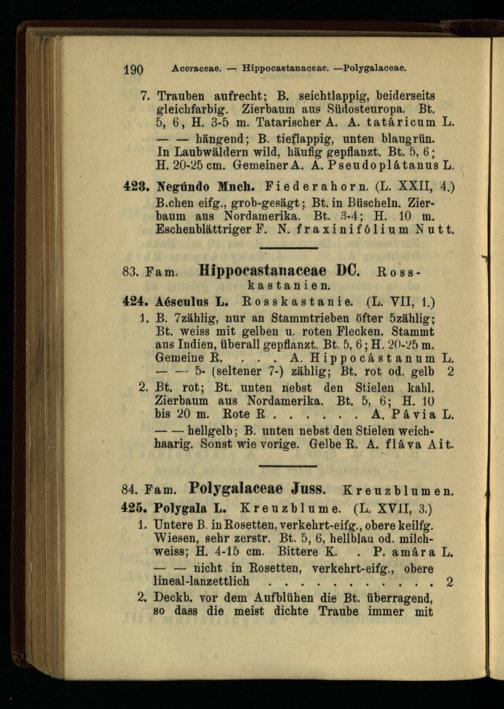 83. Farn. Hippocastanaceae DC. Rosskastanien.