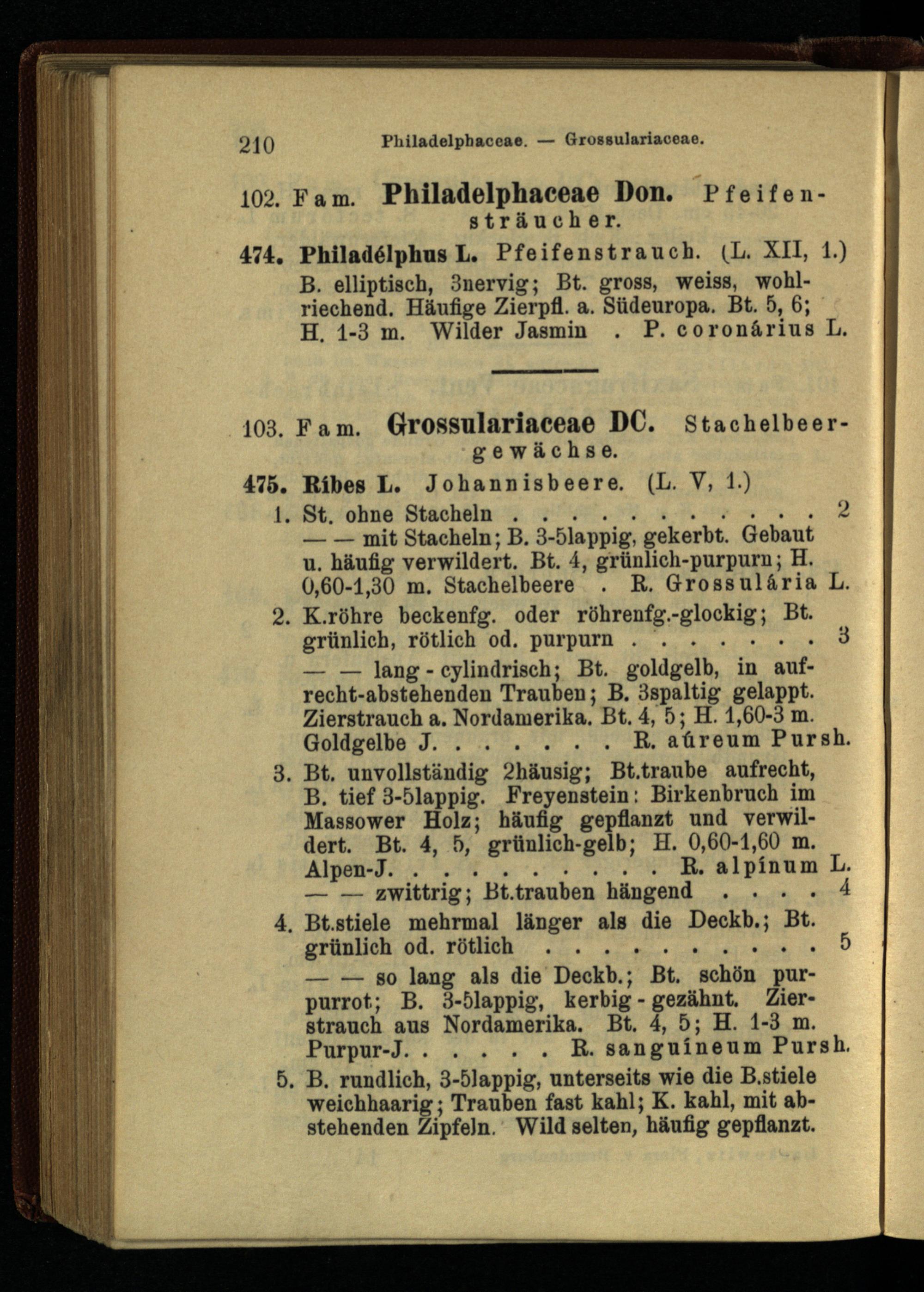 103. Fam. GroSSUlariaceae DC. Stachelbeergewächse.