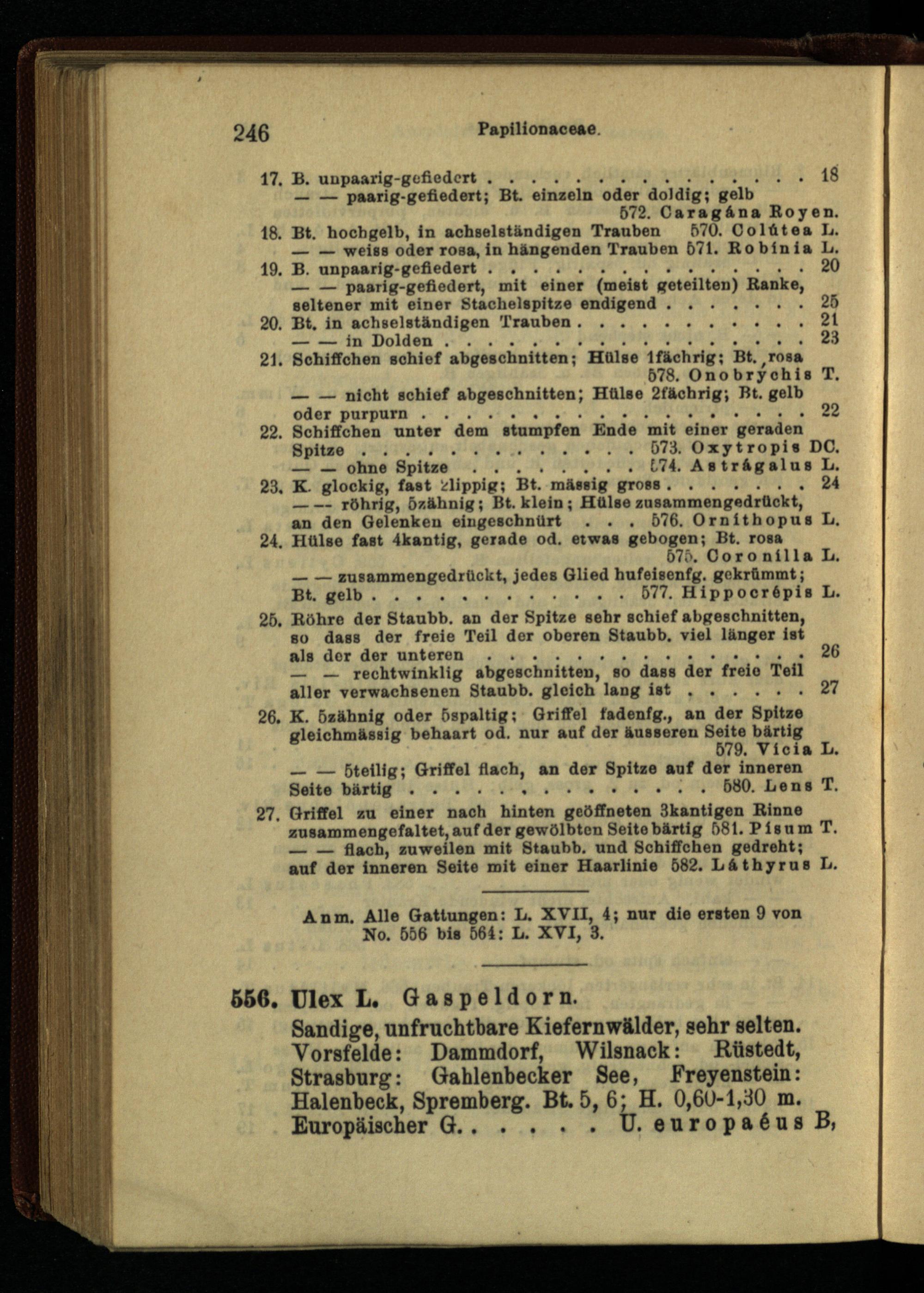 18. Bt. hochgelb, in achselständigen Trauben 670. Colütea L. -weite oder rosa, in hängenden Trauben 671. Robinia 1».