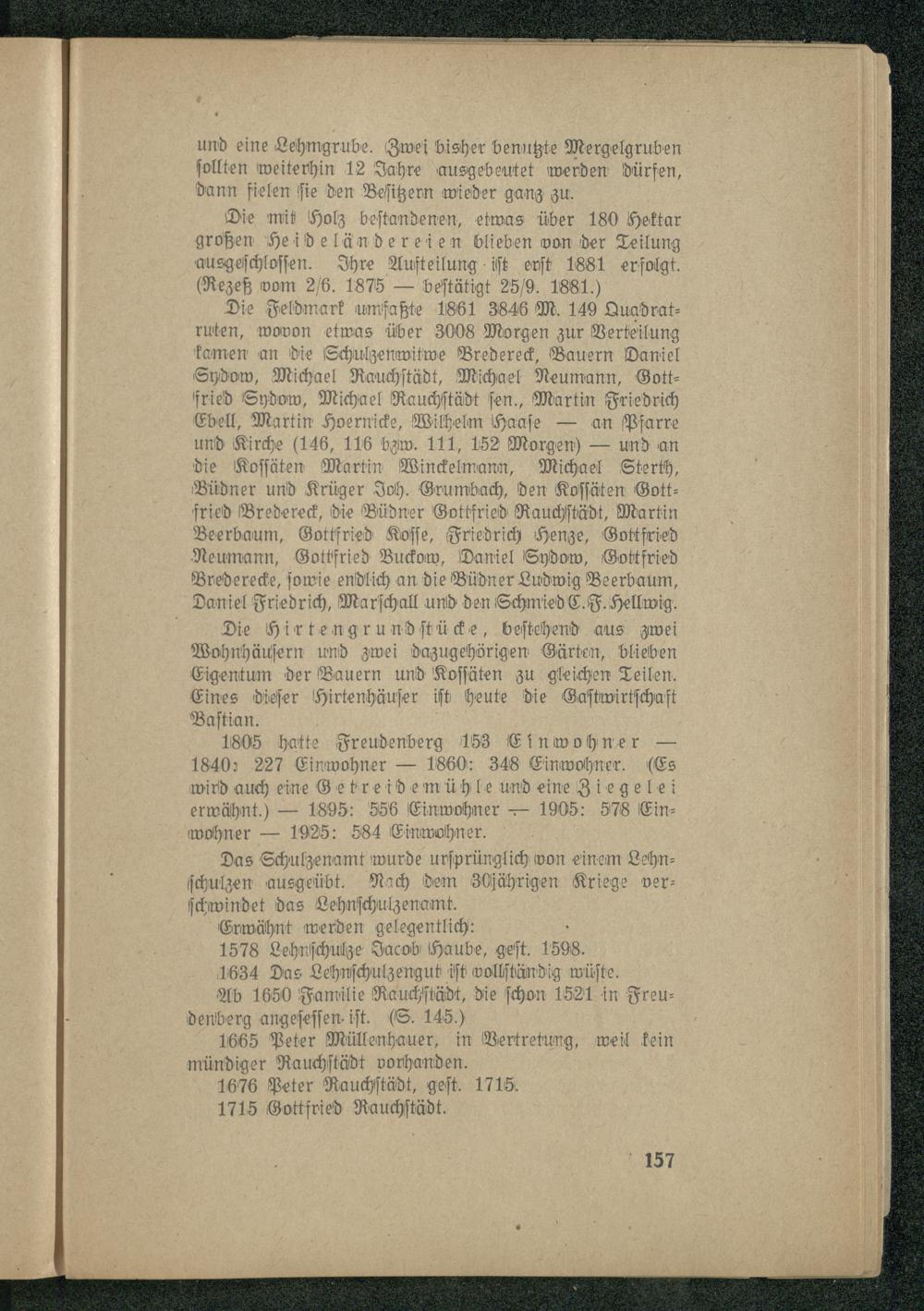Ab 1650 Familie Rauchſtädt, die ſchon 1521 in Freudenberg angeſeſſen iſt.(S. 145.)