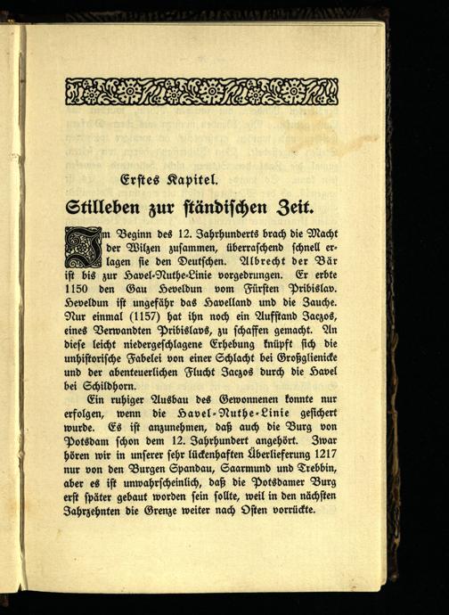 Ein ruhiger Ausbau des Gewonnenen konnte nur erfolgen, wenn die Havel-Nuthe-Linie gesichert wurde. Es ist anzunehmen, daß auch die Burg von Potsdam schon dem 12. Jahrhundert angehört. Zwar hören wir in unserer sehr lückenhaften Überlieferung 1217 nur von den Burgen Spandau, Saarmund und Trebbin, aber es ist unwahrscheinlich, daß die Potsdamer Burg erst später gebaut worden sein sollte, weil in den nächsten Jahrzehnten die Grenze weiter nach Osten vorrückte.