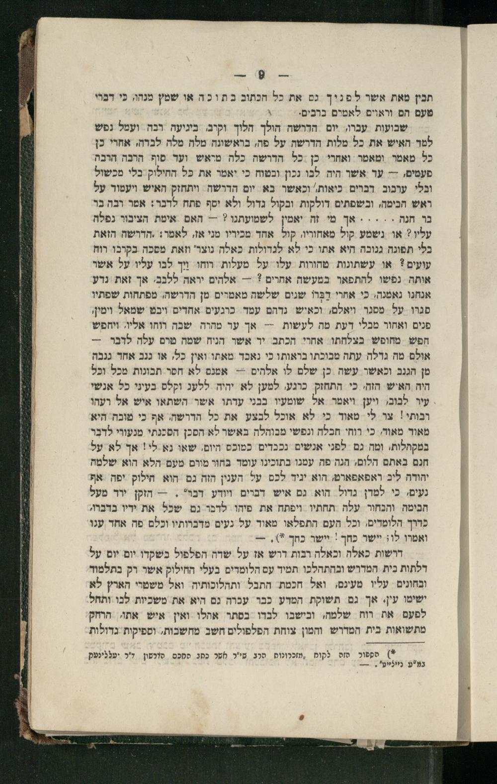 דרשות כאלה וכאלה רבות דרש אז על שרה הפלפול בשקדו יום יום על דלתות כית המדרש ובהתהלכו תמיד עם הלומדים בעלי החילוק אשר רק בתלמוד ובחונים עליו מעינם, ואל חכמת התבל ותהלוכותיה ואל משמרי הארץ לא ישימו עין. אך גם תשוקת המדע כבר עכרה גם היא את משכיות לכו ותחל לפעם את רות שלמה, ובישבו לבדו בסתר אהלו ואין איש אתו, הרחק מתשואות בית המררש והמון צוחת הפלפולים חשב מחשכות, וספיקות גדולות