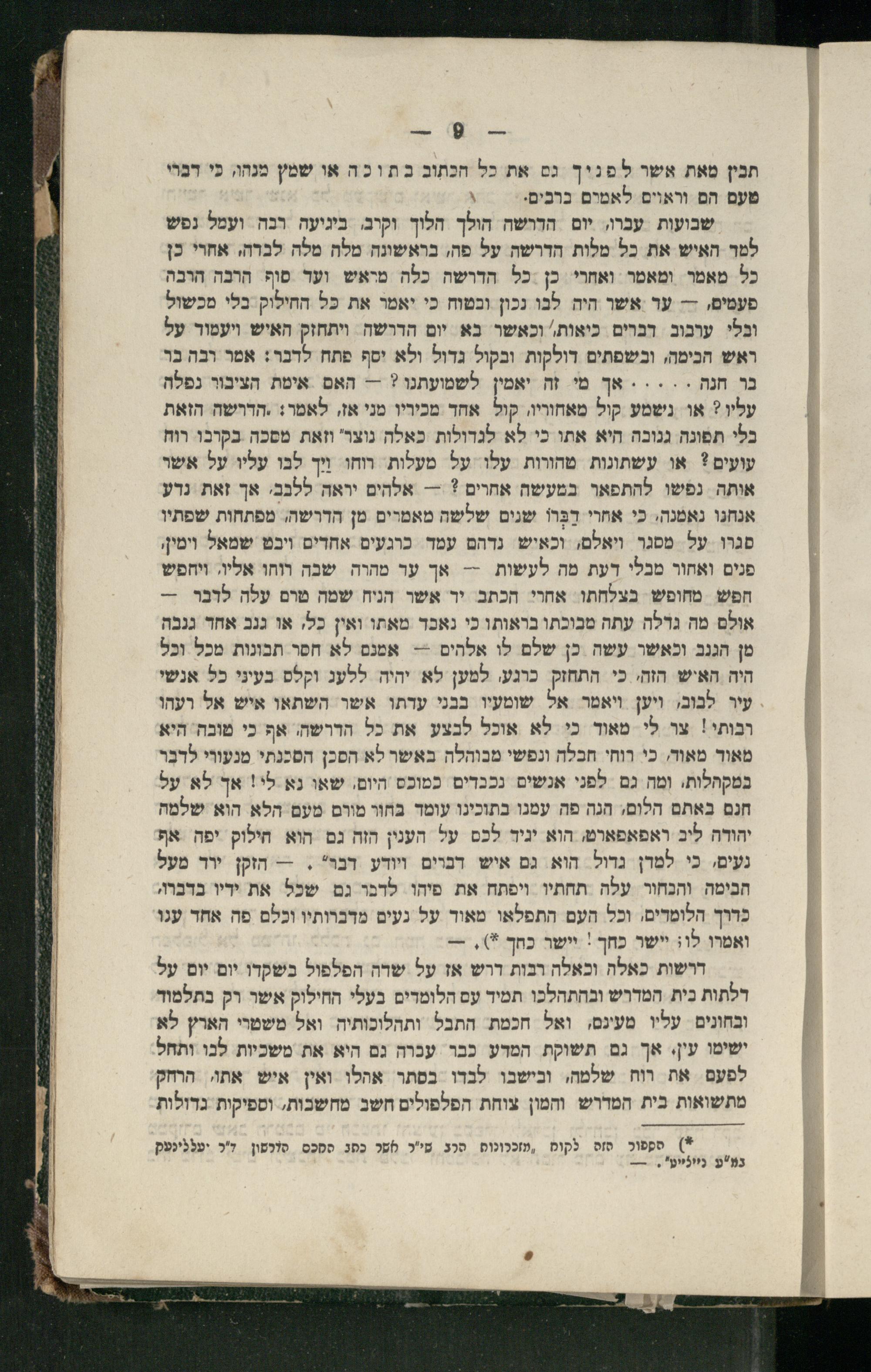 שבועות עברו, יום הדרשה הולך הלוך וקרב, ביגיעה רבה ועמל נפש למר האיש את כל מלות הדרשה על פה, בראשונה מלה מלה לברה, אחרי כן כל מאמר ומאמר ואחרי כן כל הדושה כלה מיאש ועד סוף הרבה הרבה פעמים,-- ער אשר היה לבו נכון ובטוח כי יאמר את כל החילוק בלי מכשול ובלי. ערבוב רברים כיאות,! וכאשר בא יום הדרשה ויתחזק האיש ויעמור על ראש הכימה, ובשפתים דולקות ובקול גדול ולא יסף פתח לדבר: אמר רבה בר בר חנה-<... אך מי זה יאמין לשמועתנו?-- האם אימת הציבור נפלה עליו? או נשמע קול מאחוריו, קול אחד מכיריו מני אז, לאמר:.הדרשה הזאת בלי תפונה גנובה היא אתו כי לא לגדולות כאלה נוצר' וזאת. מסכה בקרבו רוח עועים? או עשתונות מהורות עלו על מעלות רוחו ויך לבו עליו על אשר אותה נפשו להתפאר במעשה אחרים?-- אלהים יראה ללבב; אך זאת נדע אנחנו נאמנה, כי אחרי דַבְּו שנים שלשה מאמרים מן הדרשה; מפתחות שפתיו סגרו על מסגר ויאלם, וכאיש נדהם עמד כרגעים אחדים ויבט שמאל וימין, פנים ואחור מבלי דעת מה לעשות-- אך ער מהוה שבה רוחו אליו. ויחפש חפש מחופש בצלחתו אחרי הכתב יר אשר הניח שמה מרם עלה לדבר-אולם מה גרלה עתה מבובתו בראותו כי נאכד מאתו ואין כל, או גנב אחד גנבה מן הגנב וכאשר עשה כן שלם לו אלהים-- אמנם לא חסר תבונות מכל וכל היה האיש הזהי כי התחזק כרגע, למען לא יהיה ללעג וקלס בעיני כל אנשי עיר לבוב, ויען ויאמר אל שומעיו בבני עדתו אשר השתאו איש אל רעהו רבותי! צר לי מאוד כי לא אוכל לבצע את כל הדרשה: אף כי מובה. היא מאור מאוד, כי רוחי חבלה ונפשי מכוהלה באשר לא הסכן הסכנתי מנעורי לדבָר במקהלות, ומח גם לפני אנשים נכבדים כמוכס היום. שאו נא לי! אך לא על חנם באתם הלום, הגה פה עמנו בתוכינו עומד בחור מוום מעם הלא הוא שלמת יהודה ליב ראפאפארט, הוא יגיד לכם על הענין הזה גם הוא הילוק יפה אף נעים, כי למרן גדול הוא גם איש דבוים וודע דבו".-- הזקן יור מעל הבימה והכחור עלה תחתיו ויפתח את פיהו לדבר גם שכל את ידיו בדברו, כררך הלומדים, וכל העם התפלאו מאוד על געים מדברותיו וכלם פה אחד ענו ואמרו לו: י"שר כחך! יישר כחך*).-