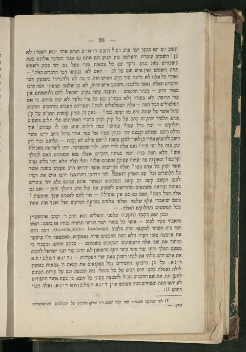 תסוב יום יום מבקר ועד עוב וכל העם רואים ואיש אחד ינוא ויאמר: לא כן! השמש עומרת והאדמה נוע תנוע וגם אתם גם אנכי המרבר אליכם כעת כשכורים נחוג ננועי נרקד עם כל צבאות מזרי מעל גם יחד סביב לשמש תחת השמים ואין איש שם על לב- האם לא בנפשו דבר הדברים השת?-ואחרי כל אלה לא הרכה עוד הְרָע האיש הזה כי מה לנו ולדבריו? בשגעון דבר הרברים האלה, גאמר בלבבנו, משוגע איש הרוח, לא כן שלמה ומרעיו' המה הרכו מאוד הרע= בעיני החנפים== תועבה עשו בקרב ישואל, להם ולנשמתם אין עוד תרופה, לא בעה'ז ולא בעוה'ב וגם כל צרי נלעד לא יגהו מזוום- כי אם הפלפולים הכל המה-- אלה המפלפלים למה! וספריהם העבים והרחבים. וחרבים כחול אשר על שפת הים מה יעשו במו'-- גאון זה תירץ קושית התו"ס על ק"ן פנים. תלמיד ותיק זה כתב על כל קוץ וקוץ מדברי האחרונים תלי תלים פשמים וחלוקים- ומת גדל עמלו עמהם! כמה לילות שוא מנו לו עבורם! איך גרלם ורבם ומפחם וקבצם יחד כגורן עמיר אל ספר אחר גדול ורחב ידים. אשר חשב להוציא אחרי כן לאור למען עשות לו שם עולם לא יכְרֶת-- הלחנם ובדי ריק יגע בזה כל ימי חייו? ואם אלה ילדי רוחו, ילדי שעשועיו, יהיו לשריפה מאכולת אש! הלא המה בניוי המה בנותיו היקרים אצלו מפז ומפנינים. האם למולך יקריבם* וגאון זה מה יעשה עם ק'ן אופנים שלו? ותלי תליו הלא יהיו גלים נצים אשר יקוץ כל אדם במו? ואלה הדרשות אשר יררוש הרב פעמים בשנה אשר כל הלומדים וכל עם הארץ יתאספ! יחד וידחקו ויתרוצצו וירצו איש את רעהו למען הקשב קשב רב קשב וכמבינים וכאשר אינם מבינם כלם יחד עומרים באימת וביראה משתאים ומחרישים לשמוע את קול הרב ההולך וחוק-- ואם גם אלה הבל המה' האם גם בם אין מועיל?-- אוי להם לאזנים שכך שומעות! מוטב שיאבדו אלף שלמה ואלפי אלפים ממועיו המרעים ואל יאד אות אחת מכל הפשטים והחלוקים האלה.-