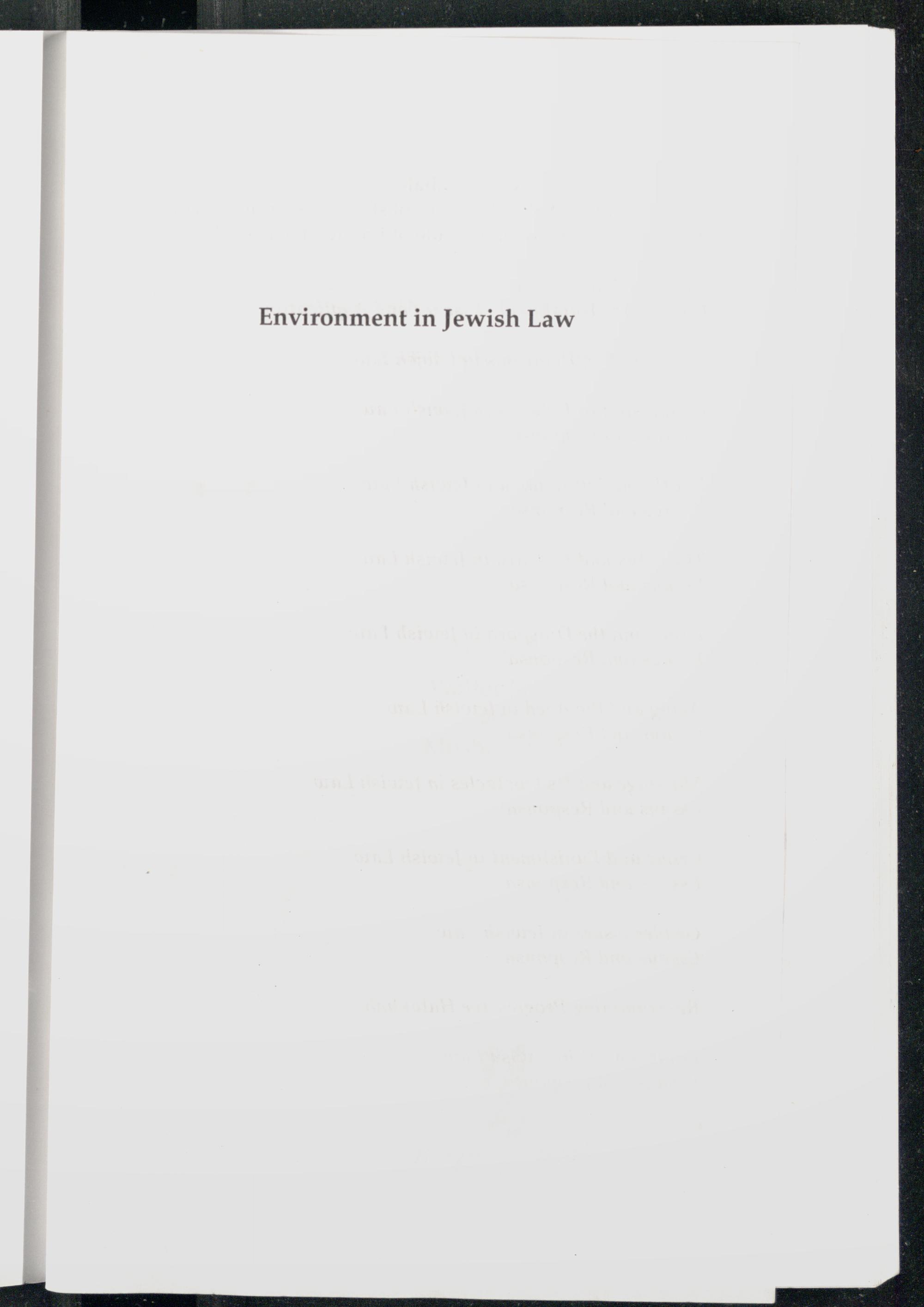 Environment in Jewish law : essays and responsa / edited by Walter Jacob and Moshe Zemer