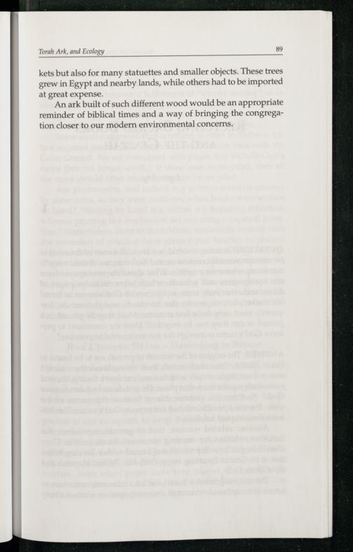 An ark built of such different wood would be an appropriate reminder of biblical times and a way of bringing the congregation closer to our modern environmental concerns.