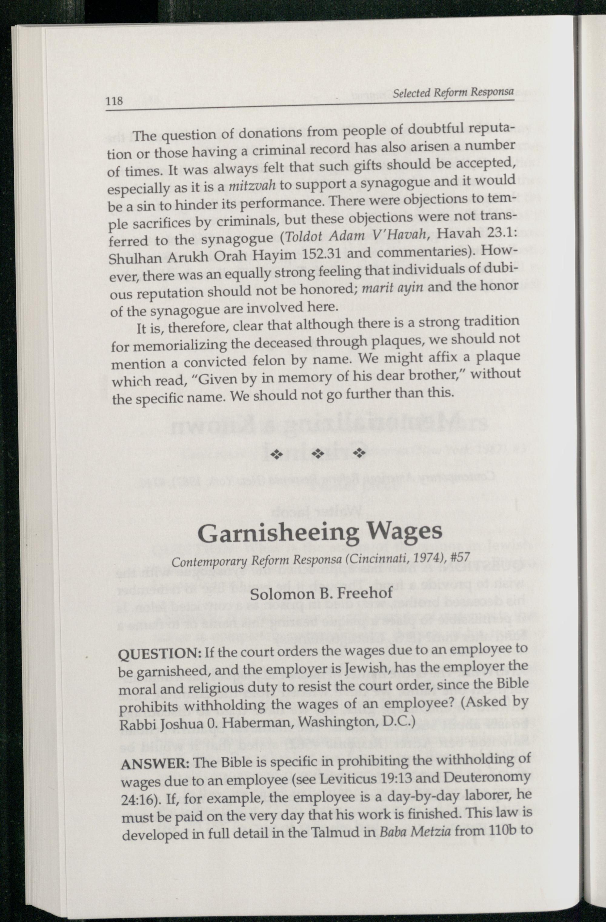 QUESTION: If the court orders the wages due to an employee to be garnisheed, and the employer is Jewish , has the employer the moral and religious duty to resist the court order, since the Bible prohibits withholding the wages of an employee?(Asked by Rabbi Joshua 0. Haberman, Washington, D.C. )