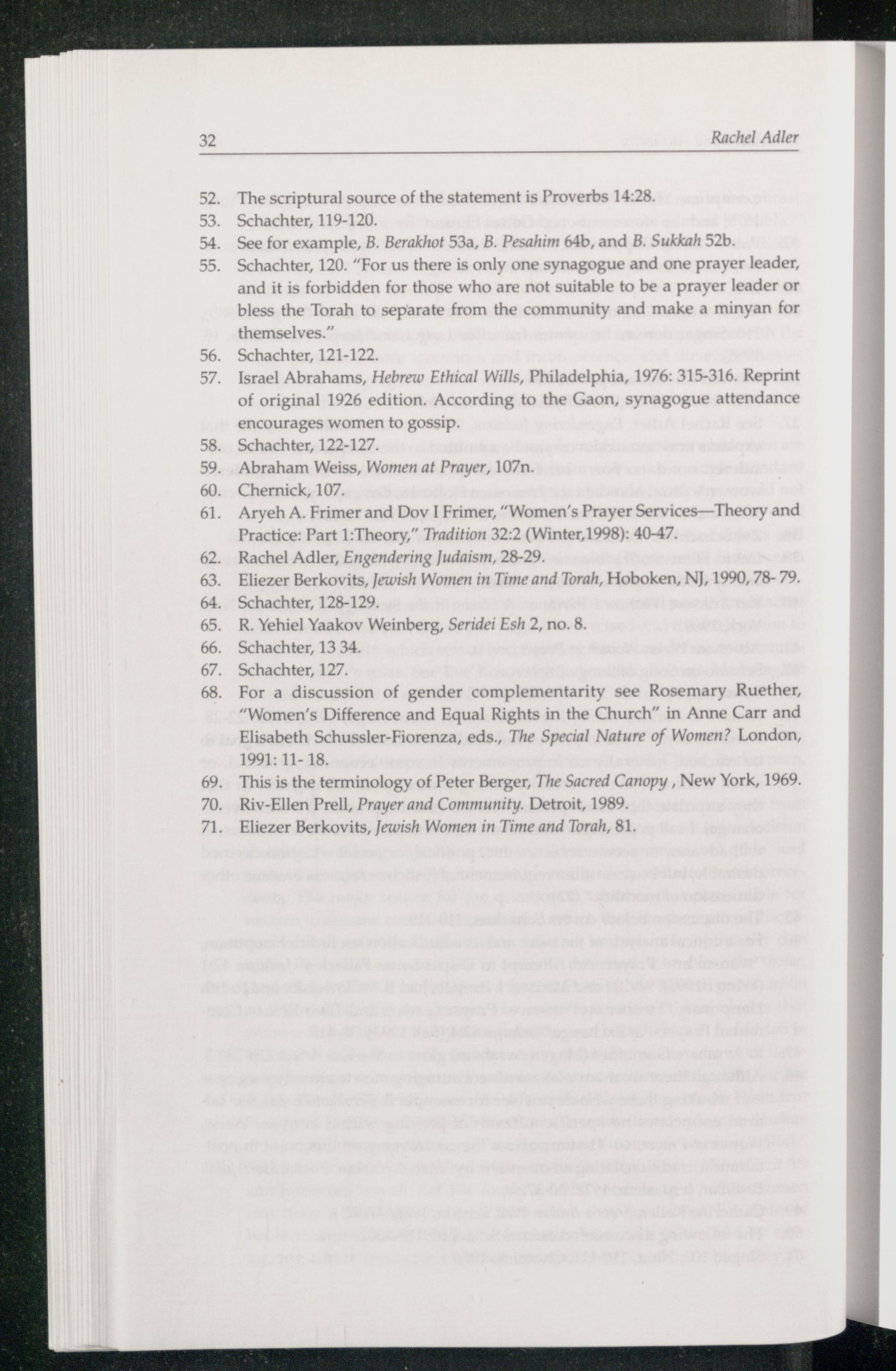 This is the terminology of Peter Berger , The Sacred Canopy, New York , 1969. Riv-Ellen Prell, Prayer and Community. Detroit , 1989 Eliezer Berkovits , Jewish Women in Time and Torah , 81.