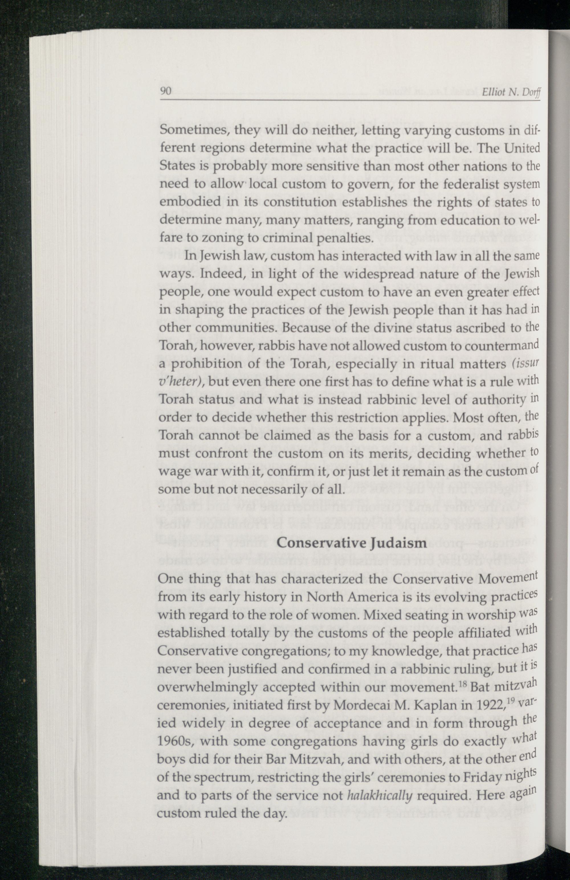 One thing that has characterized the Conservative Movement from its early history in North America is its evolving practices with regard to the role of women. Mixed seating in worship w#° established totally by the customs of the people affiliated with Conservative congregations; to my knowledge, that practice has never been justified and confirmed in a rabbinic ruling, but it 15