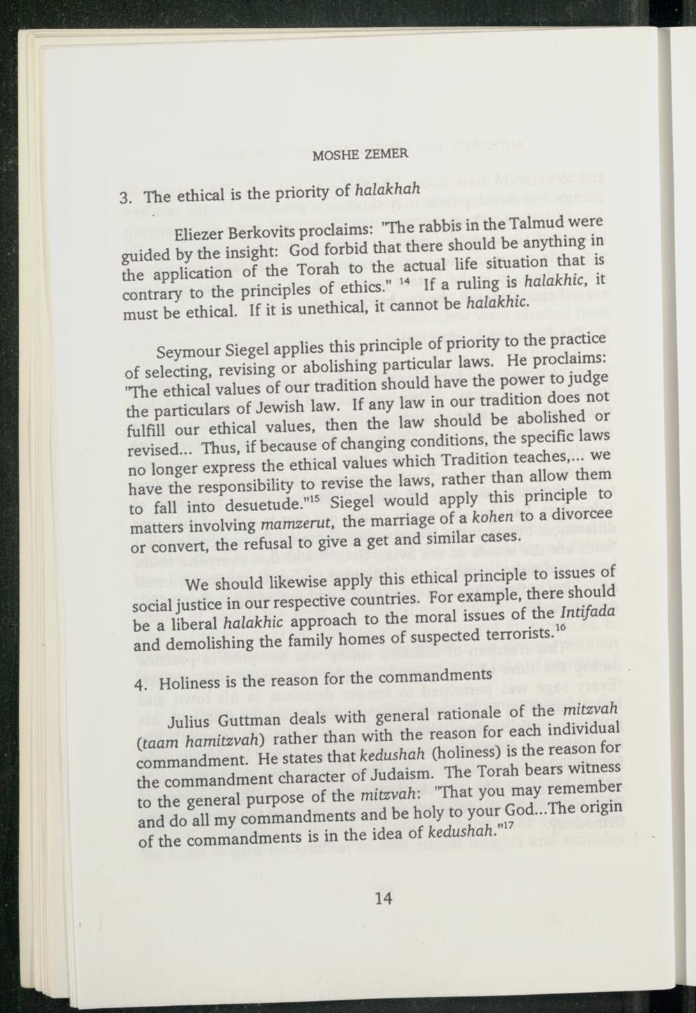 Eliezer Berkovits proclaims:"The rabbis in the Talmud were guided by the insight: God forbid that there should be anything in the application of the Torah to the actual life situation that is contrary to the principles of ethics."** If a ruling is halakhic, it must be ethical. If it is unethical, it cannot be halakhic.