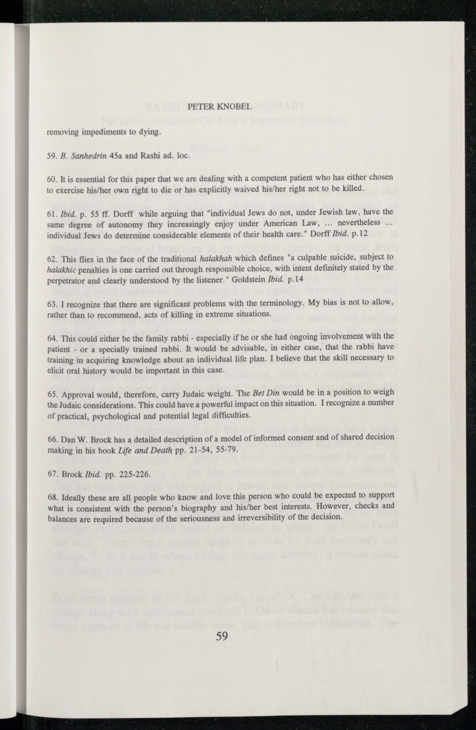 PETER KNOBEL removing impediments to dying. 59. B. Sanhedrin 45a and Rashi ad. loc.