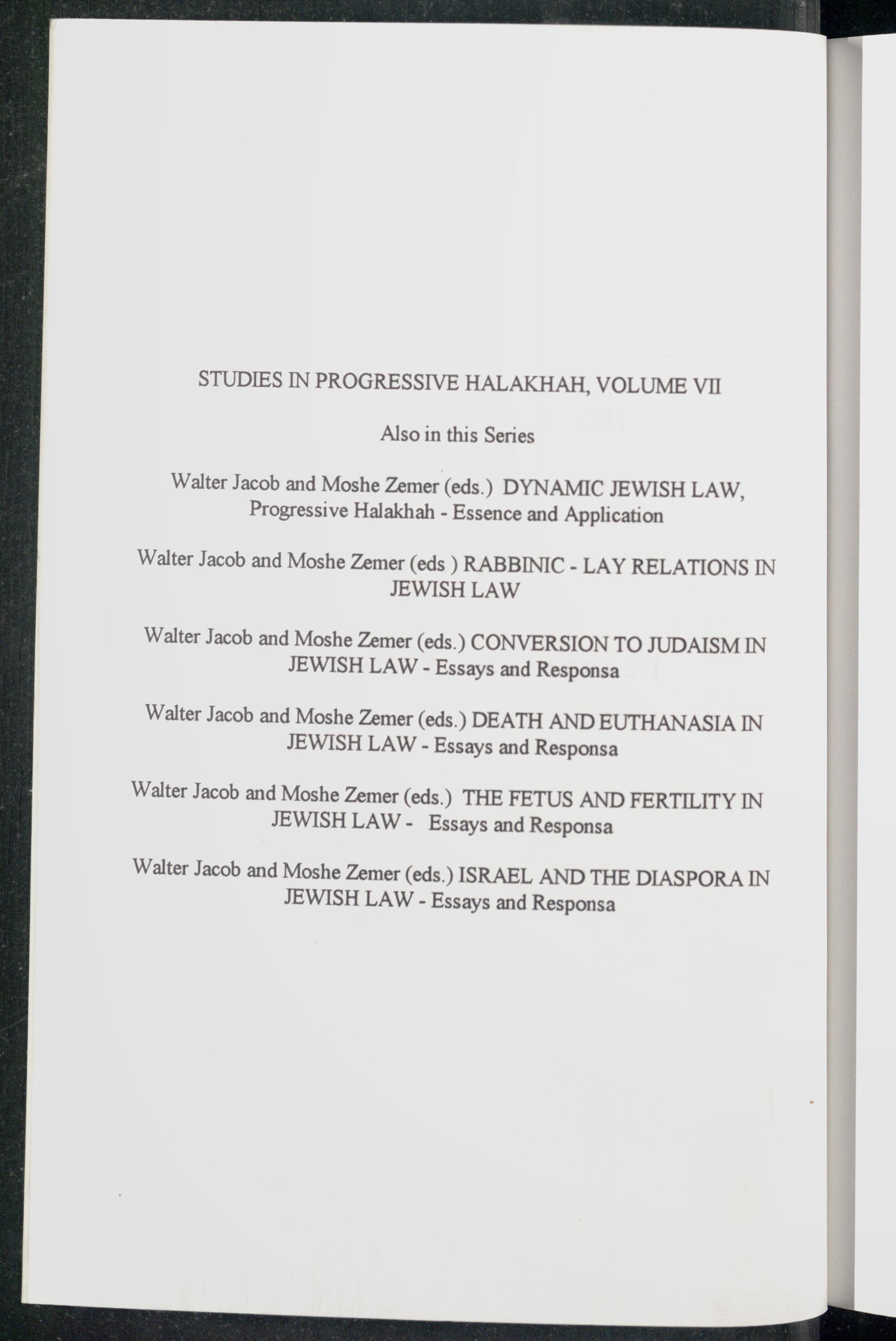 STUDIES IN PROGRESSIVE HALAKHAH, VOLUME VII Also in this Series