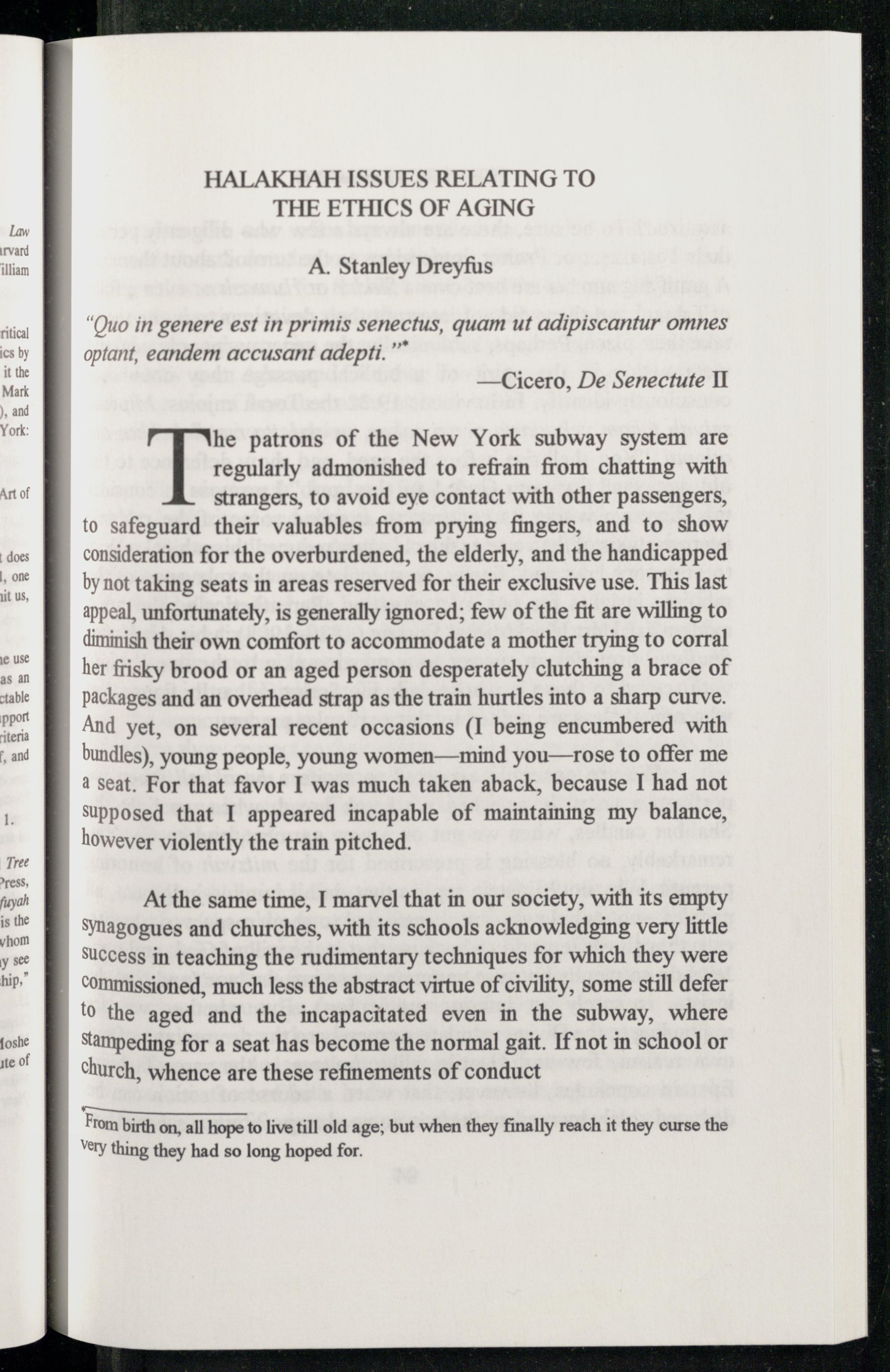 “Ouo in genere est in primis senectus, quam ut adipiscantur omnes optant, eandem accusant adepti.”” —Cicero , De Senectute 11