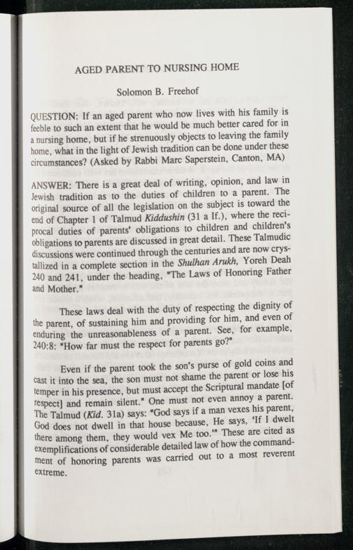 AGED PARENT TO NURSING HOME Solomon B. Freehof