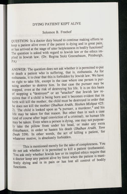 DYING PATIENT KEPT ALIVE Solomon B. Freehof