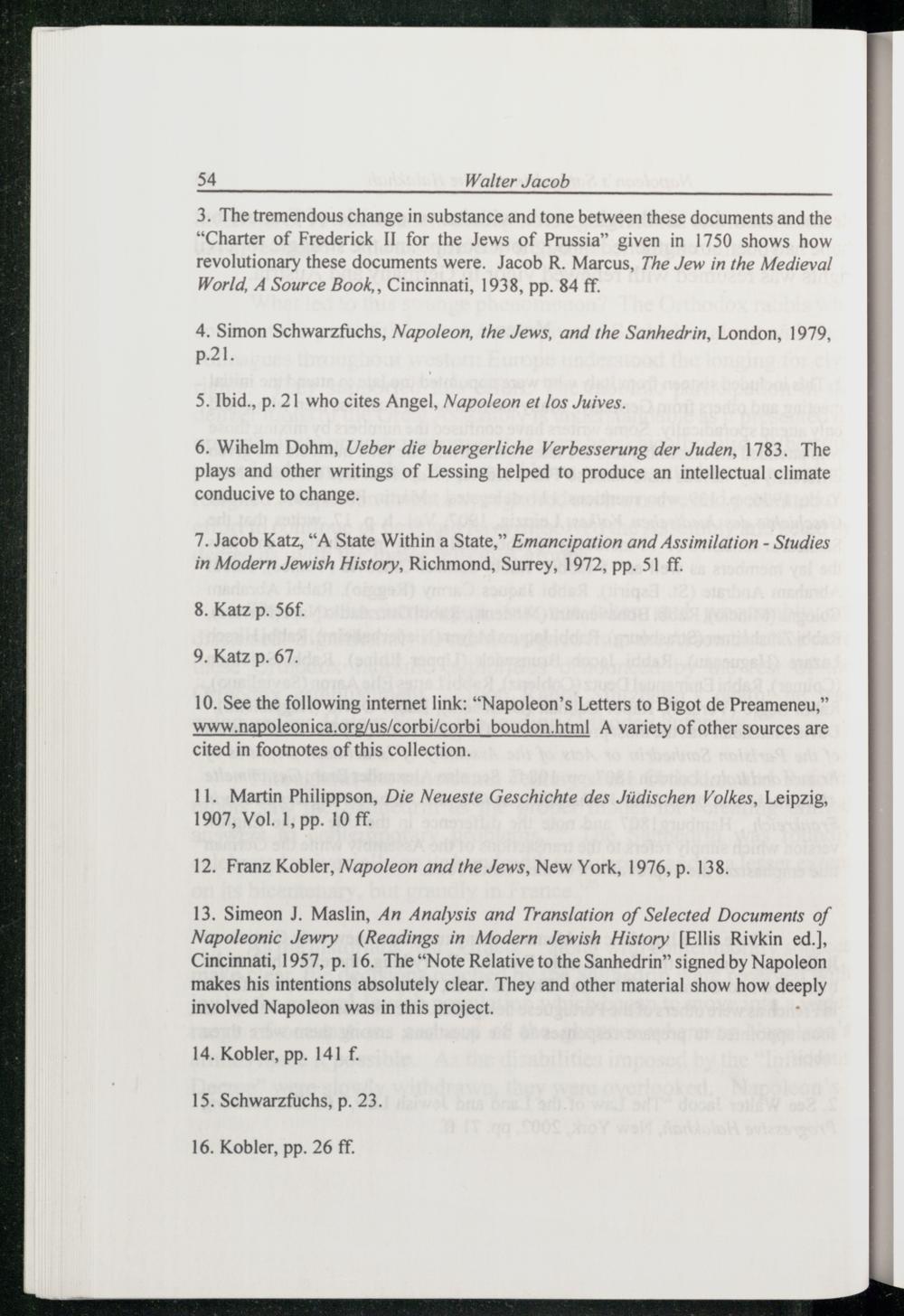 7. Jacob Katz ,“A State Within a State,” Emancipation and Assimilation- Studies in Modern Jewish History, Richmond, Surrey, 1972, pp. 51 ff.