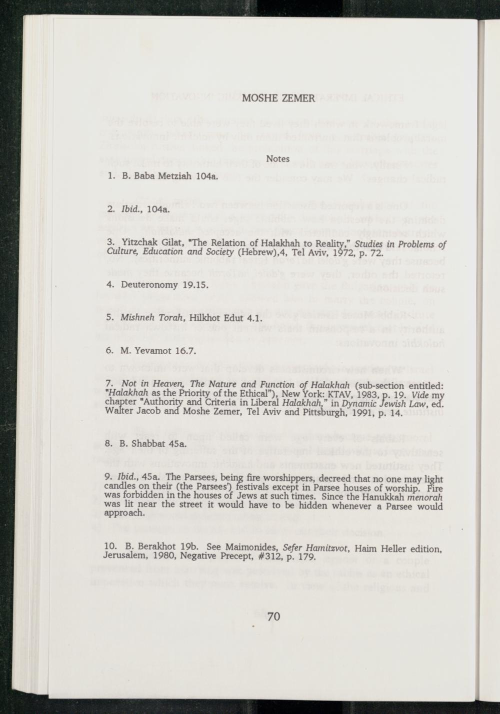 7. Not in Heaven, The Nature and Function of Halakhah(sub-section entitled: “Halakhah as the Priority of the Ethical”), New York : KTAV, 1983, p. 19. Vide m chapter"Authority and Criteria in Liberal Halakhah, ” in Dynamic Jewish Law, ed. Walter Jacob and Moshe Zemer , Tel Aviv and Pittsburgh , 1991, p. 14.
