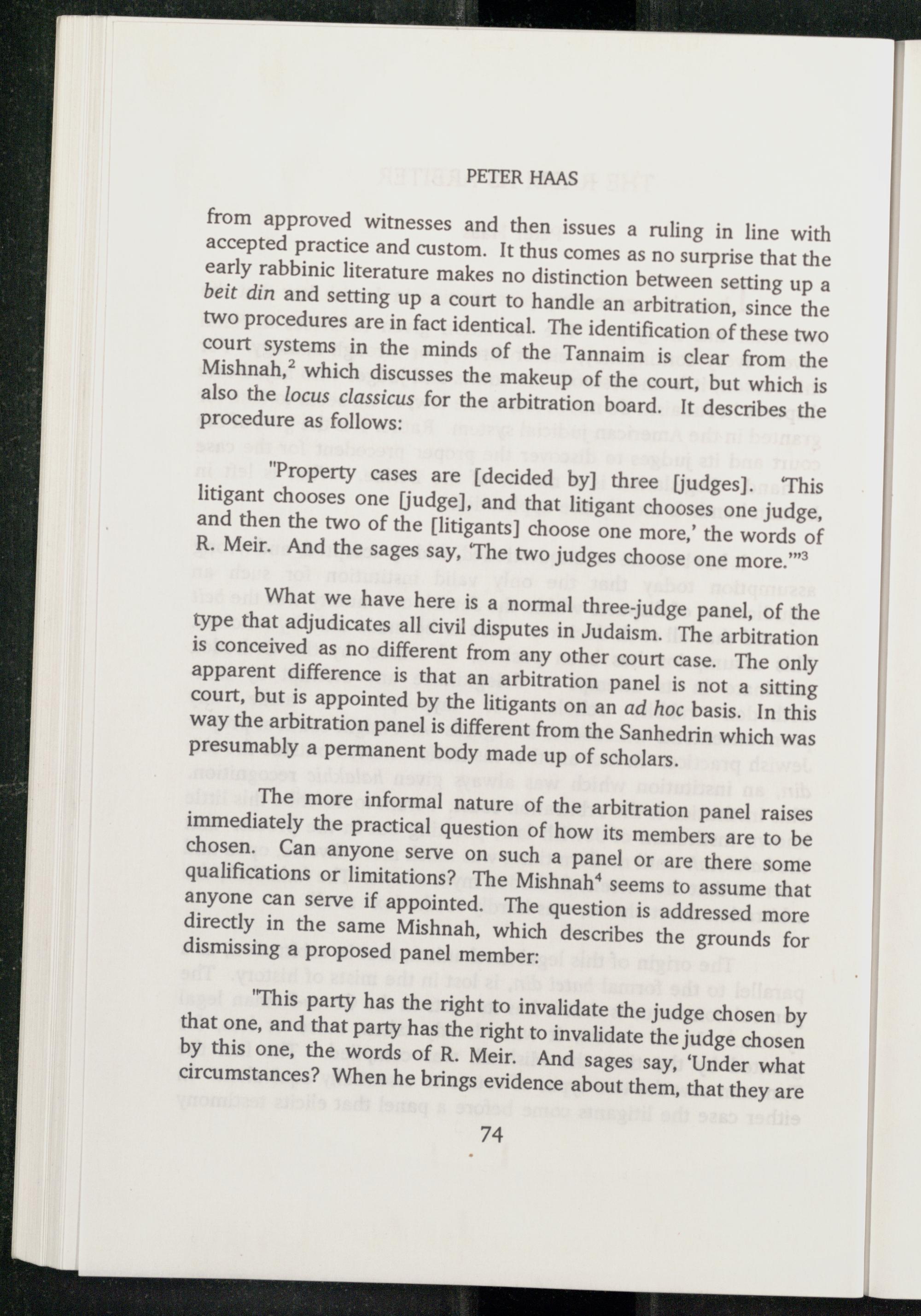 What we have here is a normal three-judge panel, of the type that adjudicates all civil disputes in Judaism . The arbitration is conceived as no different from any other court case. The only apparent difference is that an arbitration panel is not a sitting court, but is appointed by the litigants on an ad hoc basis. In this way the arbitration panel is different from the Sanhedrin which was presumably a permanent body made up of scholars.