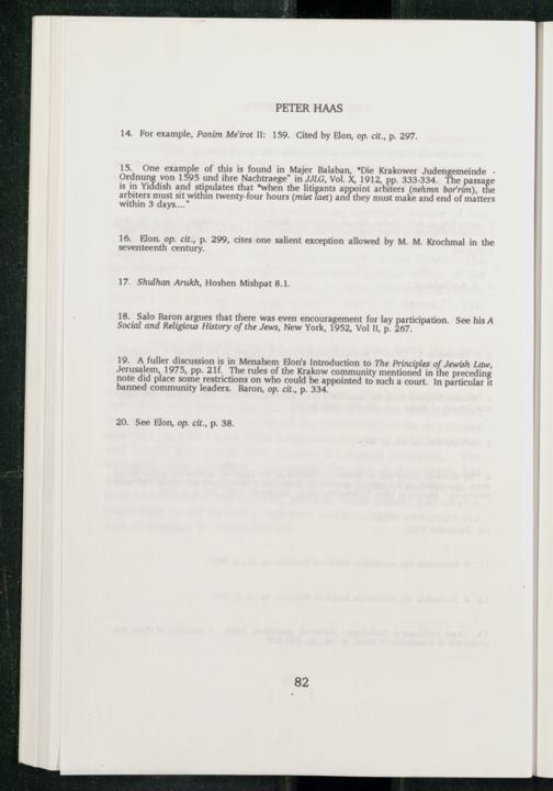 19. A fuller discussion is in Menahem Elon 's Introduction to The Principles of Jewish Law, Jerusalem , 1975, pp. 21f. The rules of the Krakow community mentioned in the precedin note did place some restrictions on who could be appointed to such a court. In particular it banned community leaders. Baron , op. cit., p. 334.