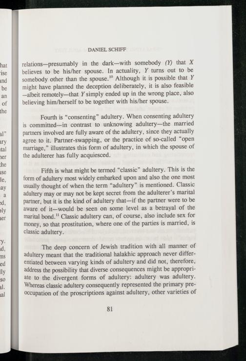 The deep concern of Jewish tradition with all manner of adultery meant that the traditional halakhic approach never differentiated between varying kinds of adultery and did not, therefore, address the possibility that diverse consequences might be appropriate to the divergent forms of adultery: adultery was adultery. Whereas classic adultery consequently represented the primary preoccupation of the proscriptions against adultery, other varieties of