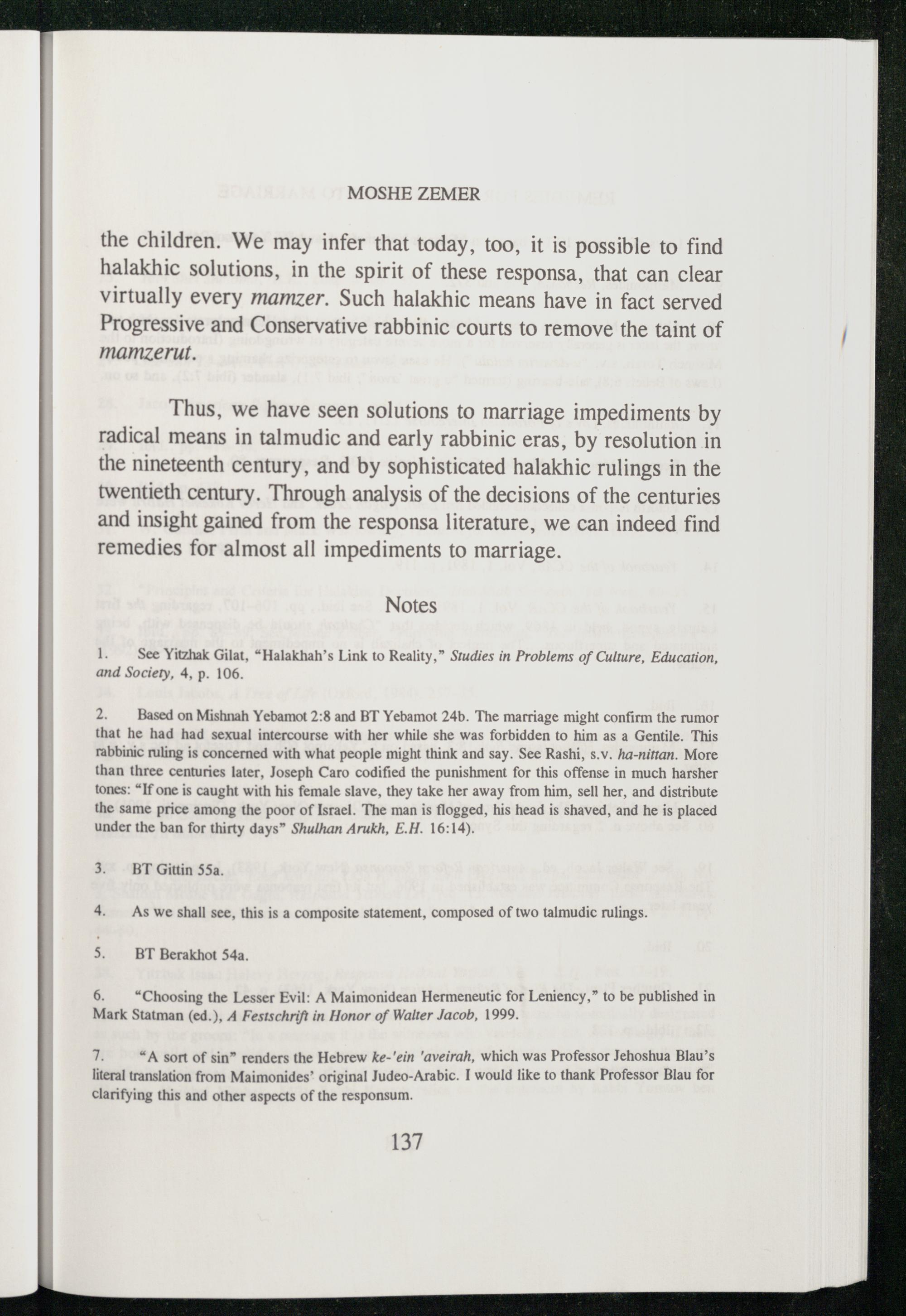 1. See Yitzhak Gilat,“Halakhah’s Link to Reality,” Studies in Problems of Culture, Education, and Society, 4, p. 106.