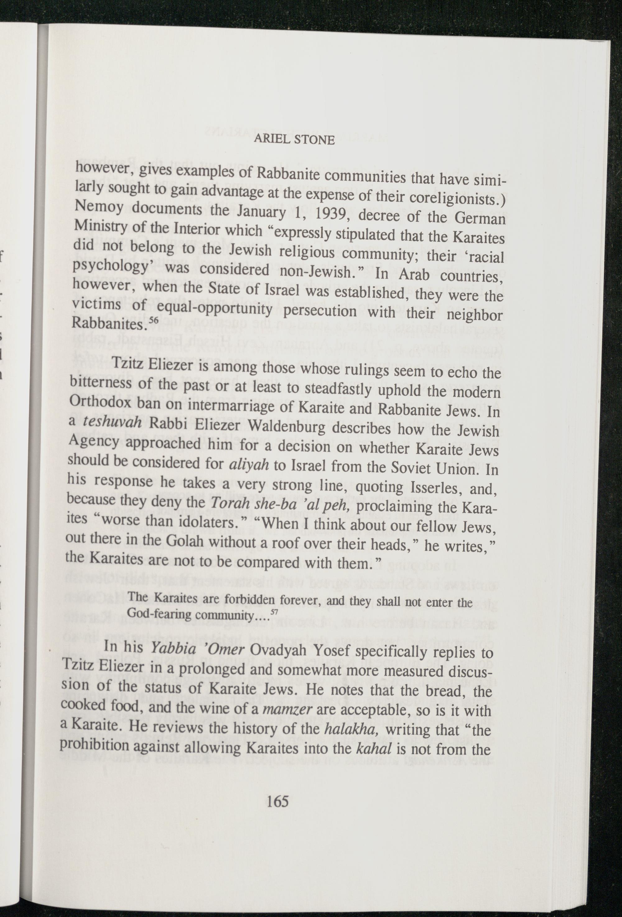 however, gives examples of Rabbanite communities that have similarly sought to gain advantage at the expense of their coreligionists.) Nemoy documents the January 1, 1939, decree of the German Ministry of the Interior which“expressly stipulated that the Karaites did not belong to the Jewish religious community; their‘racial psychology’ was considered non-Jewish .” In Arab countries, however, when the State of Israel was established, they were the victims of equal-opportunity persecution with their neighbor Rabbanites.**