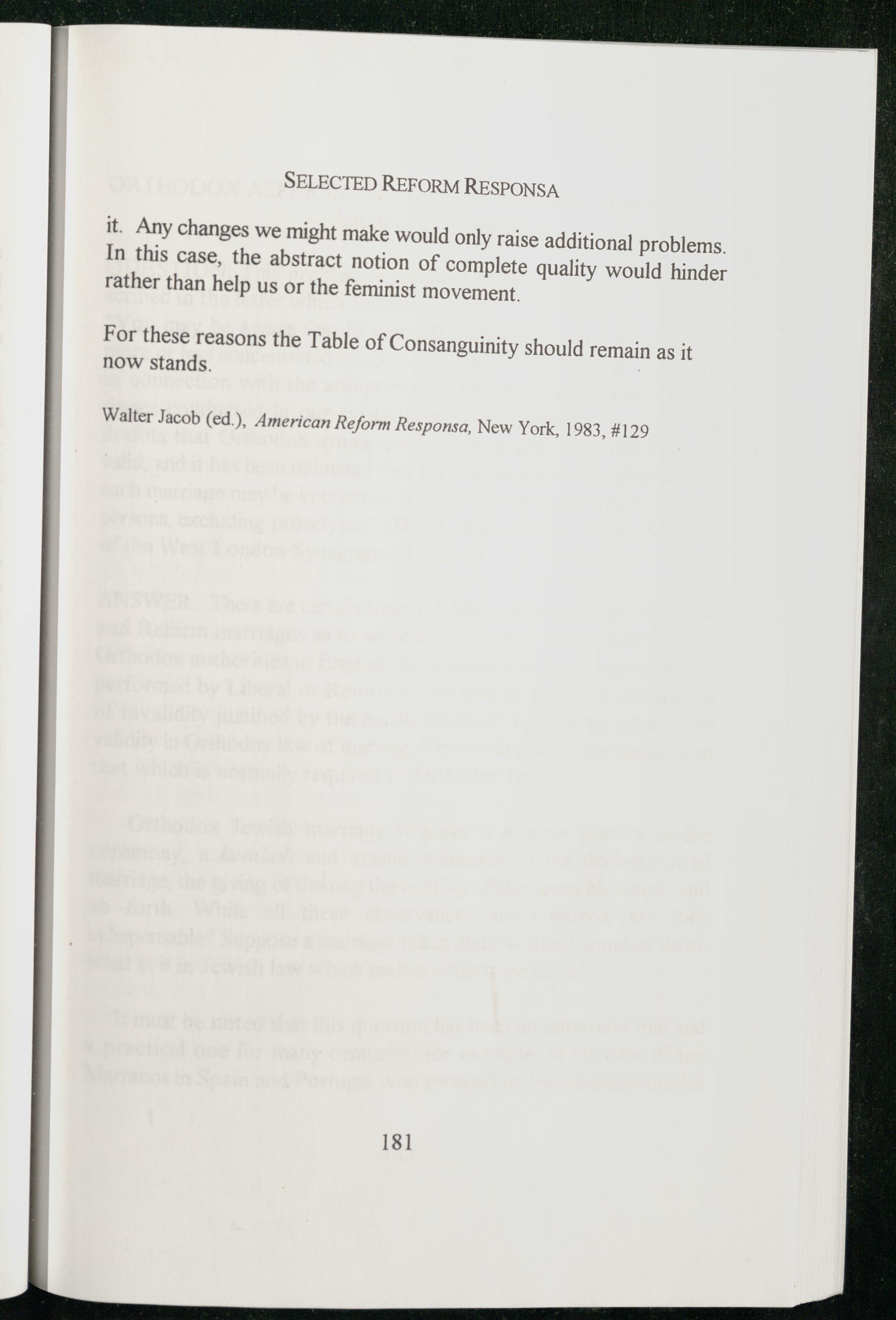 SELECTED REFORM RESPONSA it. Any changes we might make would only raise additional problems. In this case, the abstract notion of complete quality would hinder