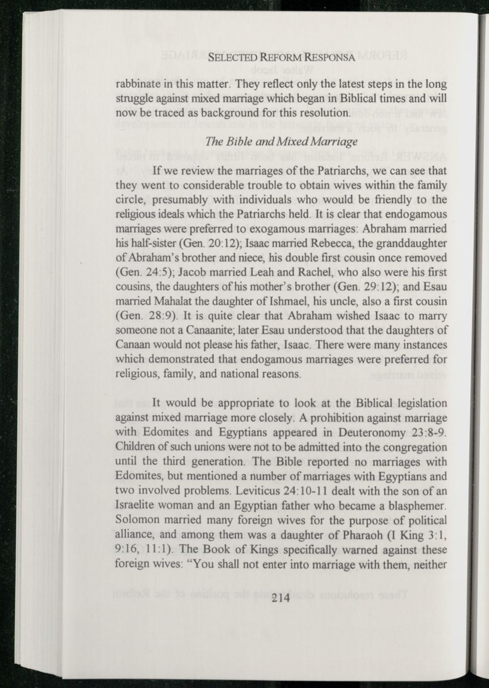 rabbinate in this matter. They reflect only the latest steps in the long struggle against mixed marriage which began in Biblical times and will now be traced as background for this resolution.