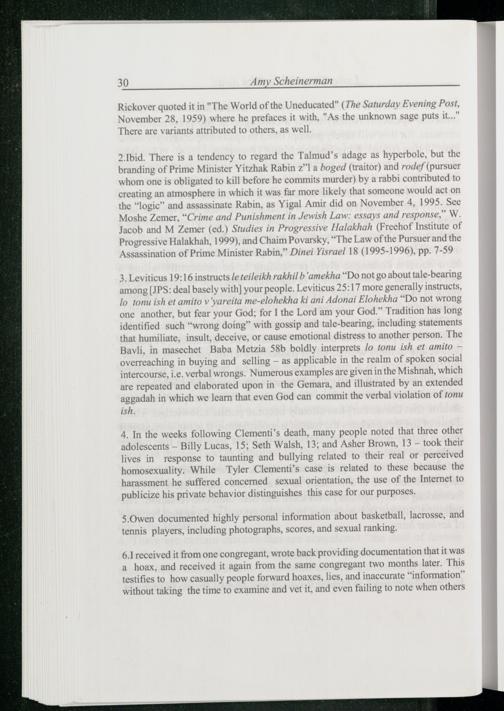 2.Ibid. There is a tendency to regard the Talmud ’s adage as hyperbole, but the branding of Prime Minister Yitzhak Rabin z"] a boged(traitor) and rodef(pursuer whom one is obligated to kill before he commits murder) by a rabbi contributed to creating an atmosphere in which it was far more likely that someone would act on the“logic” and assassinate Rabin , as Yigal Amir did on November 4, 1995. See Moshe Zemer ,“Crime and Punishment in Jewish Law: essays and response,” W. Jacob and M Zemer (ed.) Studies in Progressive Halakhah(Freehof Institute of Progressive Halakhah, 1999), and Chaim Povarsky,“The Law of the Pursuer and the Assassination of Prime Minister Rabin, ” Dinei Yisrael 18(1995-1996), pp. 7-59
