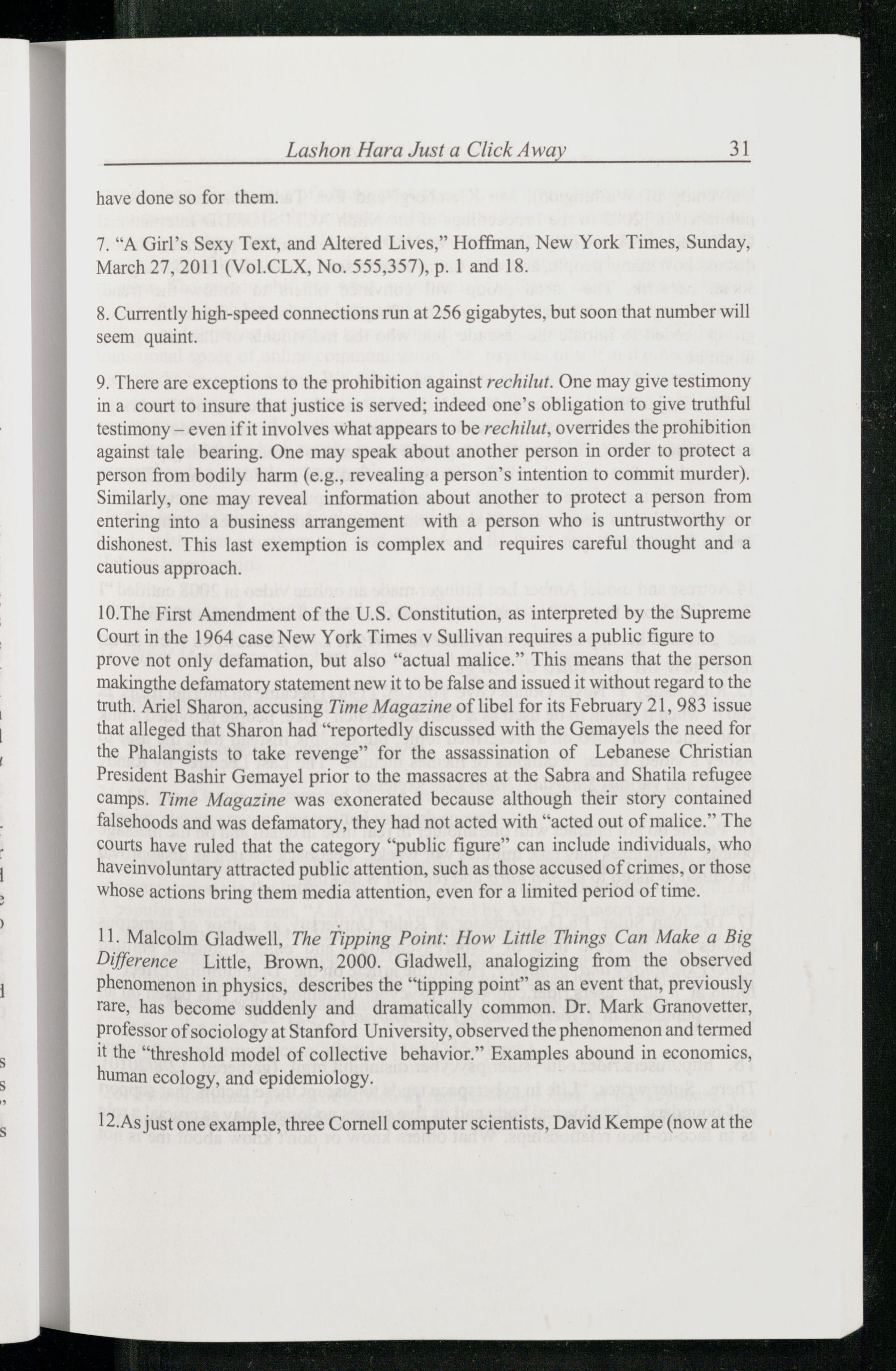 7.“A Girl’s Sexy Text, and Altered Lives,” Hoffman, New York Times , Sunday, March 27, 2011(Vol.CLX, No. 555,357), p. 1 and 18.