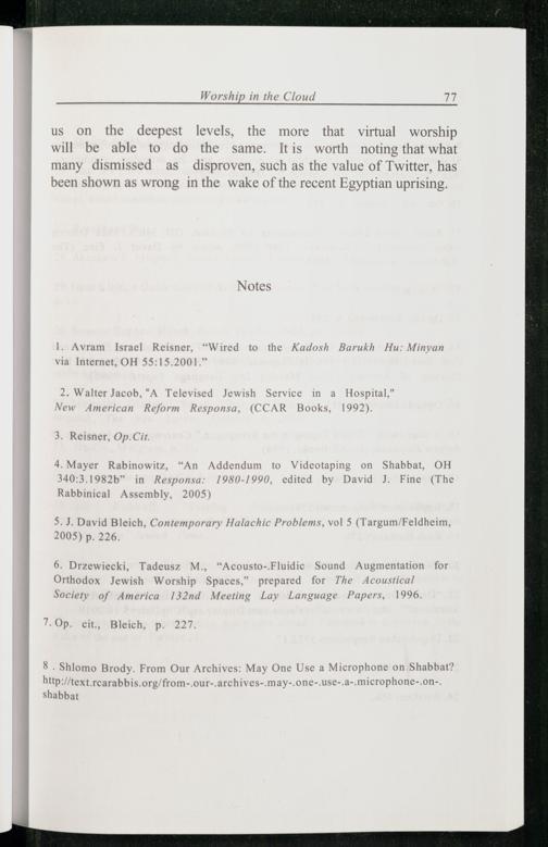 2. Walter Jacob ,“A Televised Jewish Service in a Hospital," New American Reform Responsa,(CCAR Books, 1992).