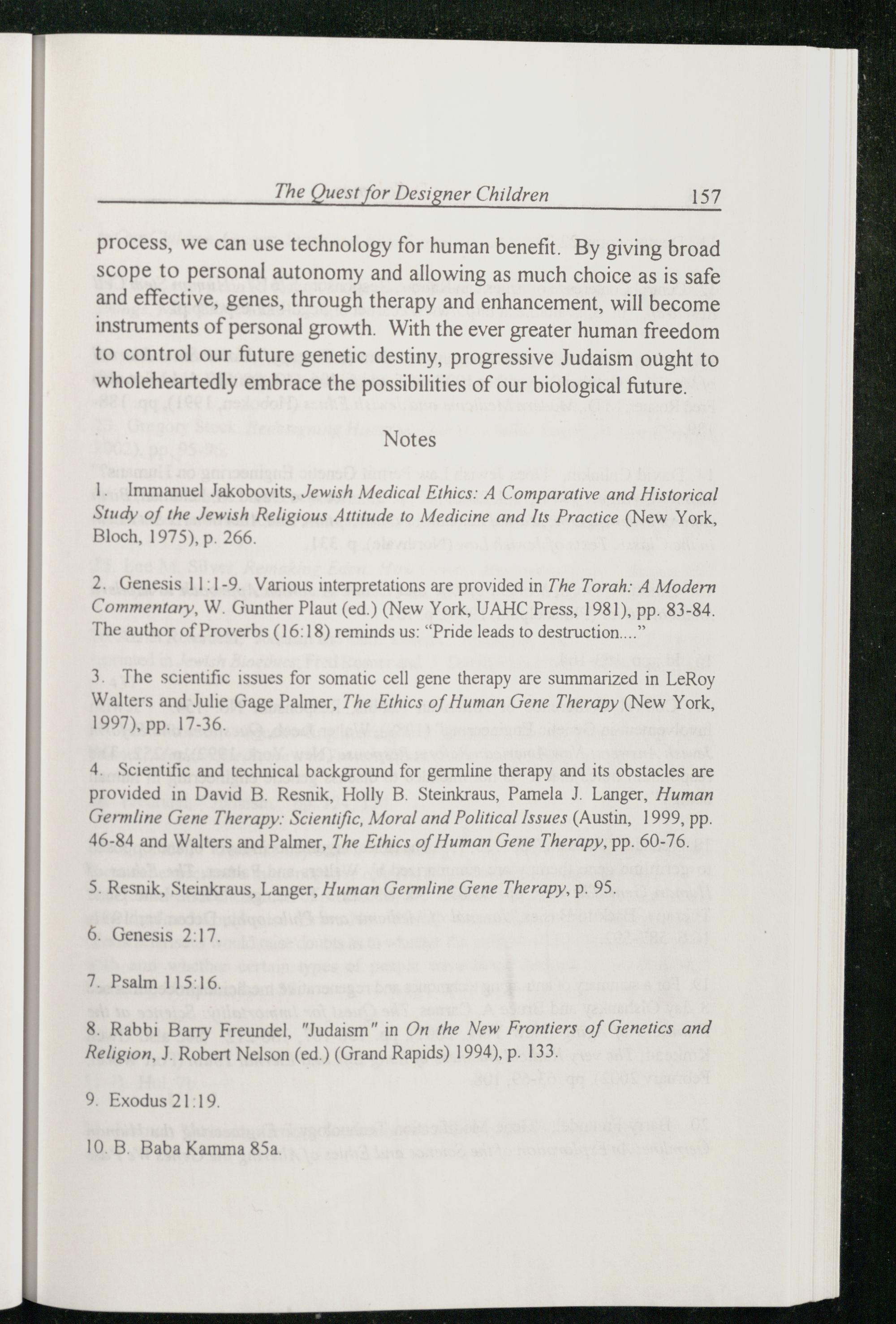 8. Rabbi Barry Freundel,Judaism in On the New Frontiers of Genetics and Religion, J. Robert Nelson (ed.)(Grand Rapids ) 1994), p. 133.