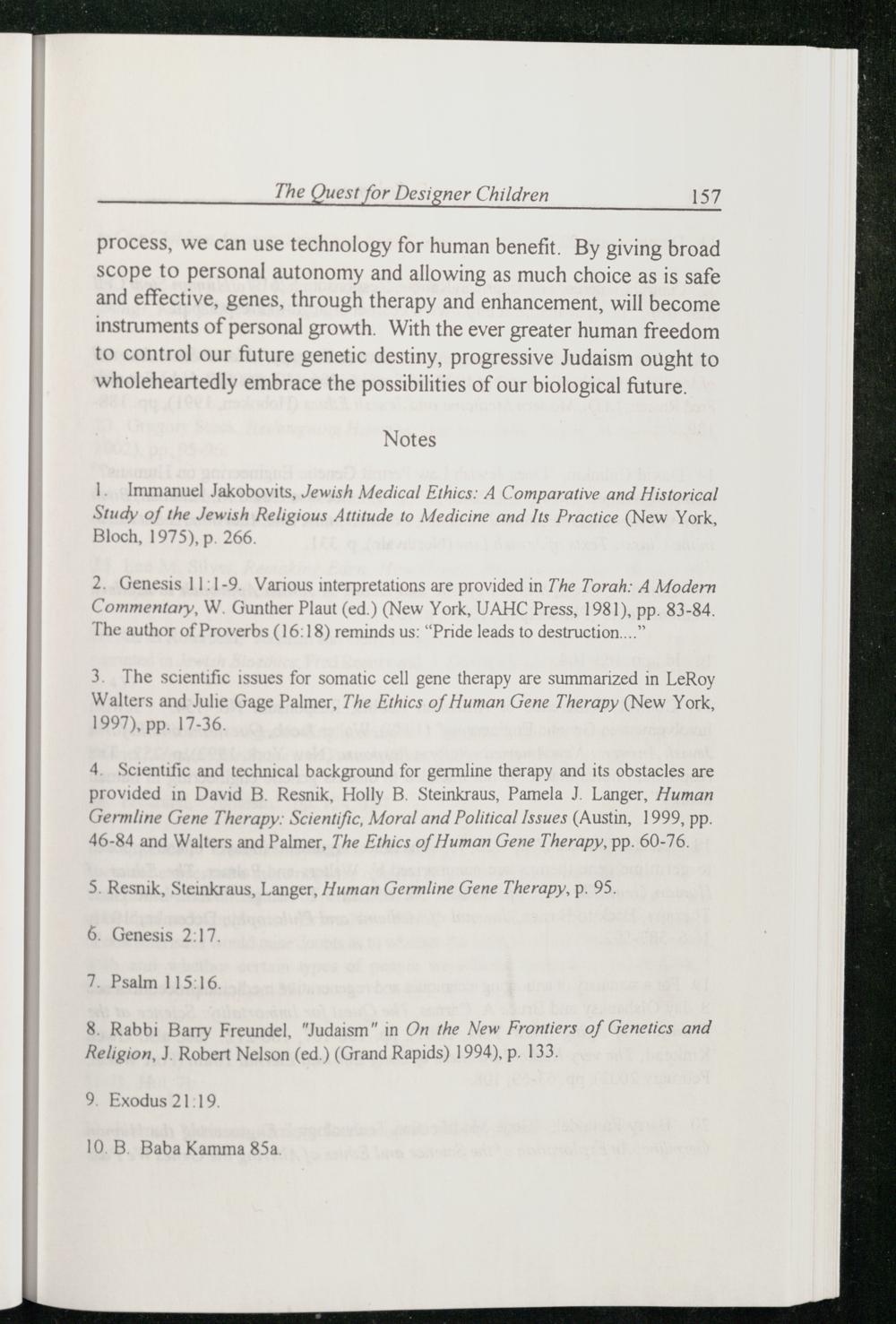 8. Rabbi Barry Freundel,“Judaism ” in On the New Frontiers of Genetics and Religion, J. Robert Nelson (ed.)(Grand Rapids ) 1994), p. 133.